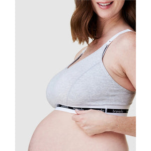 The full cup version of Bravado's Original TENCEL™ modal & organic cotton nursing bra, this wirefree design delivers enhanced coverage and support for DD+ bust sizes while offering the same sporty look, practical features (such as secure nursing clips you can easily use with one hand) and soft, breathable comfort. It's a wireless, pull-on nursing bra with a racerback design that's free from hardware, and has Bravado logo detailing all around the comfortably-wide underband elastic.