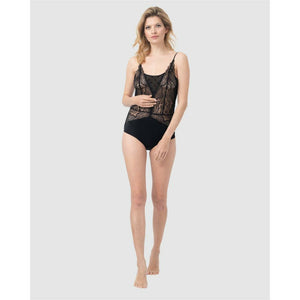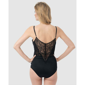 Strike a mesmerising figure in the intricately-detailed Patchwork Lace Bodysuit by Oh!Zuza, which is carefully pieced together from alternating panels of lace, polkadot mesh, and smooth opaque fabric. At the back, an extra-long insert of sheer lace sweeps down your spine, elongating your figure and enhancing your curves.