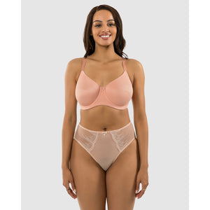 Achieve a sleeker look under your clothing with this seamless minimiser bra, which features double-lined moulded cups with internal side slings to visually reduce your bust by up to one cup size. The cups are made from an elegant jacquard fabric for a stylish touch, and are set into a soft microfibre cradle for maximum comfort.