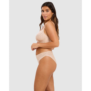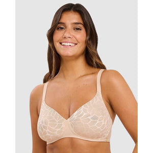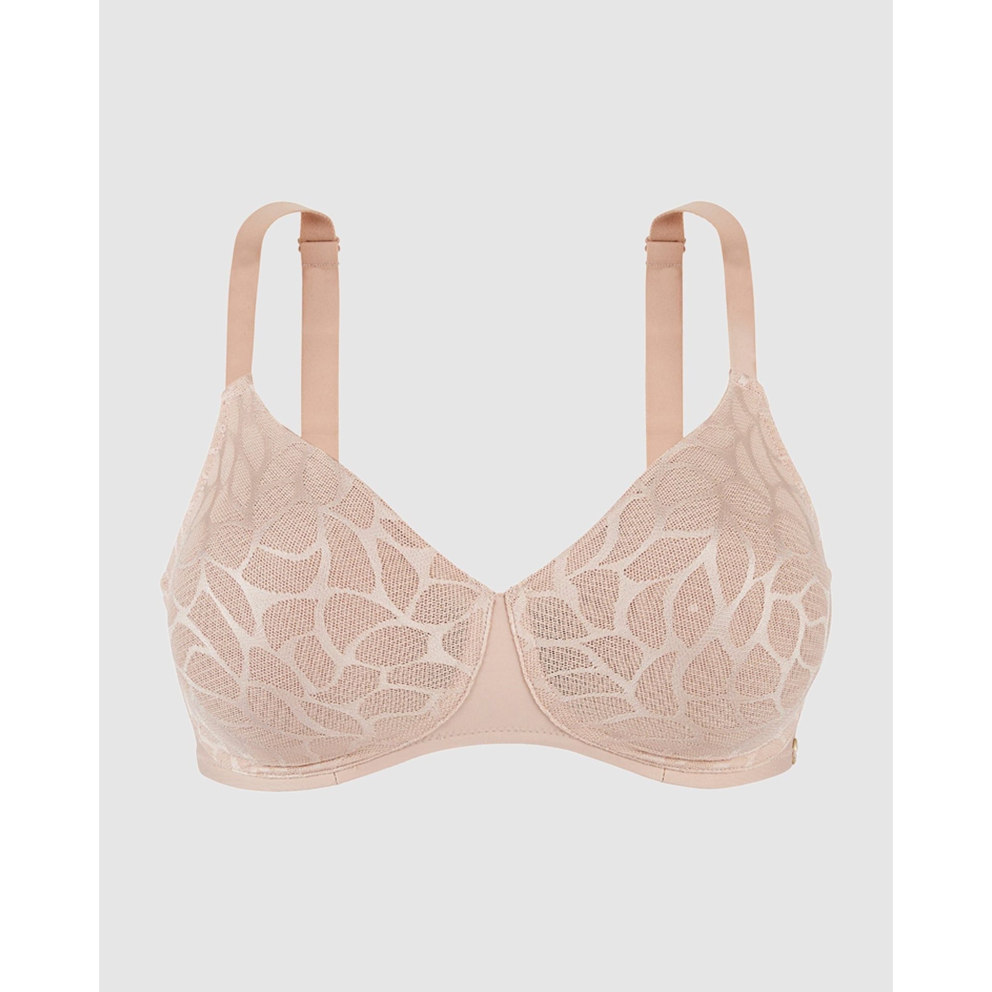 Get firm support and a smooth, shapely look while enjoying wirefree comfort in this soft moulded bra, with cups made from ultra-flat lace that's discreet under clothing. The adjustable straps can optionally be crossed over at the back, where the band is made from ultra-soft microfibre for all-day comfort.