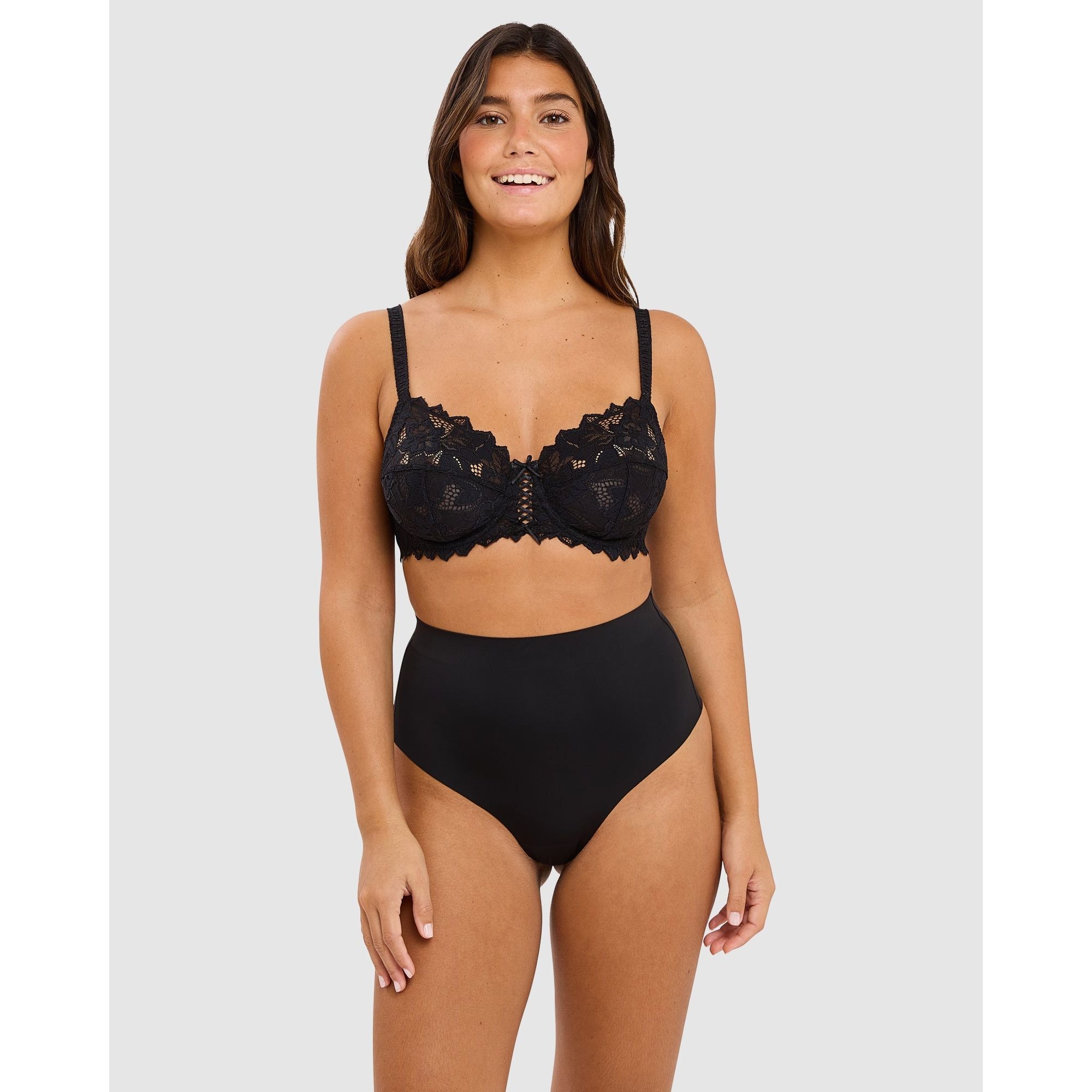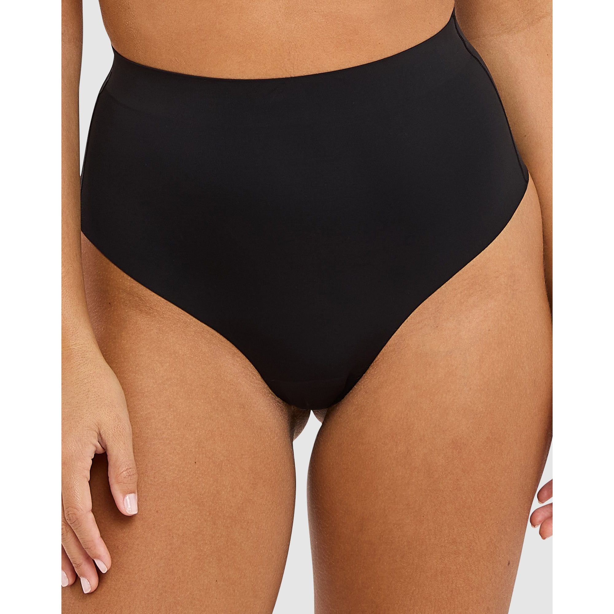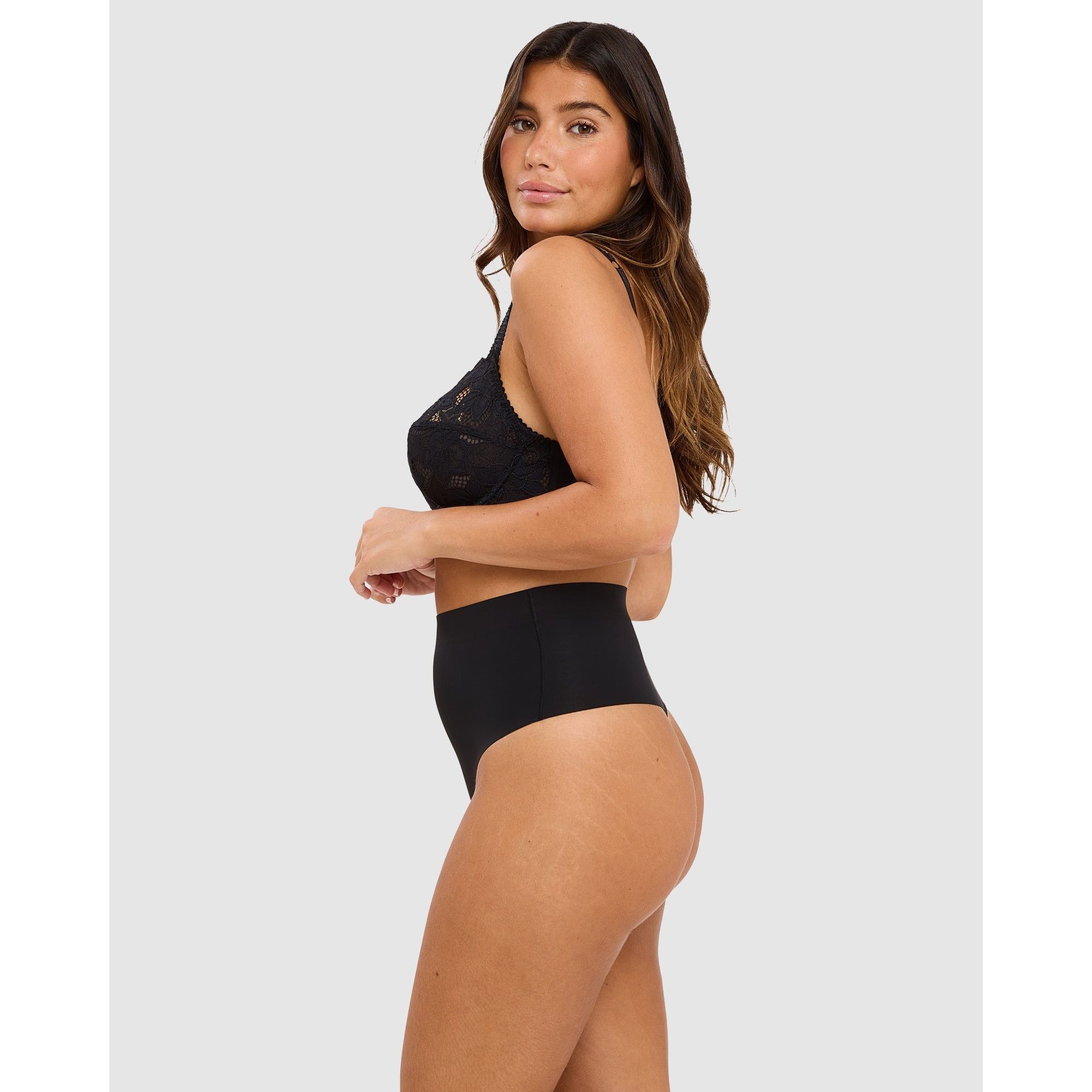 Get a slimmer, sleeker look under your clothing without losing your curves in this high-waisted shaping thong, which smooths your tummy and waist without flattening your bottom or creative visible panty lines. Created with flat finishes, elastic-free edges and a soft 'second skin' microfibre fabric, it offers medium control shaping with maximum comfort.