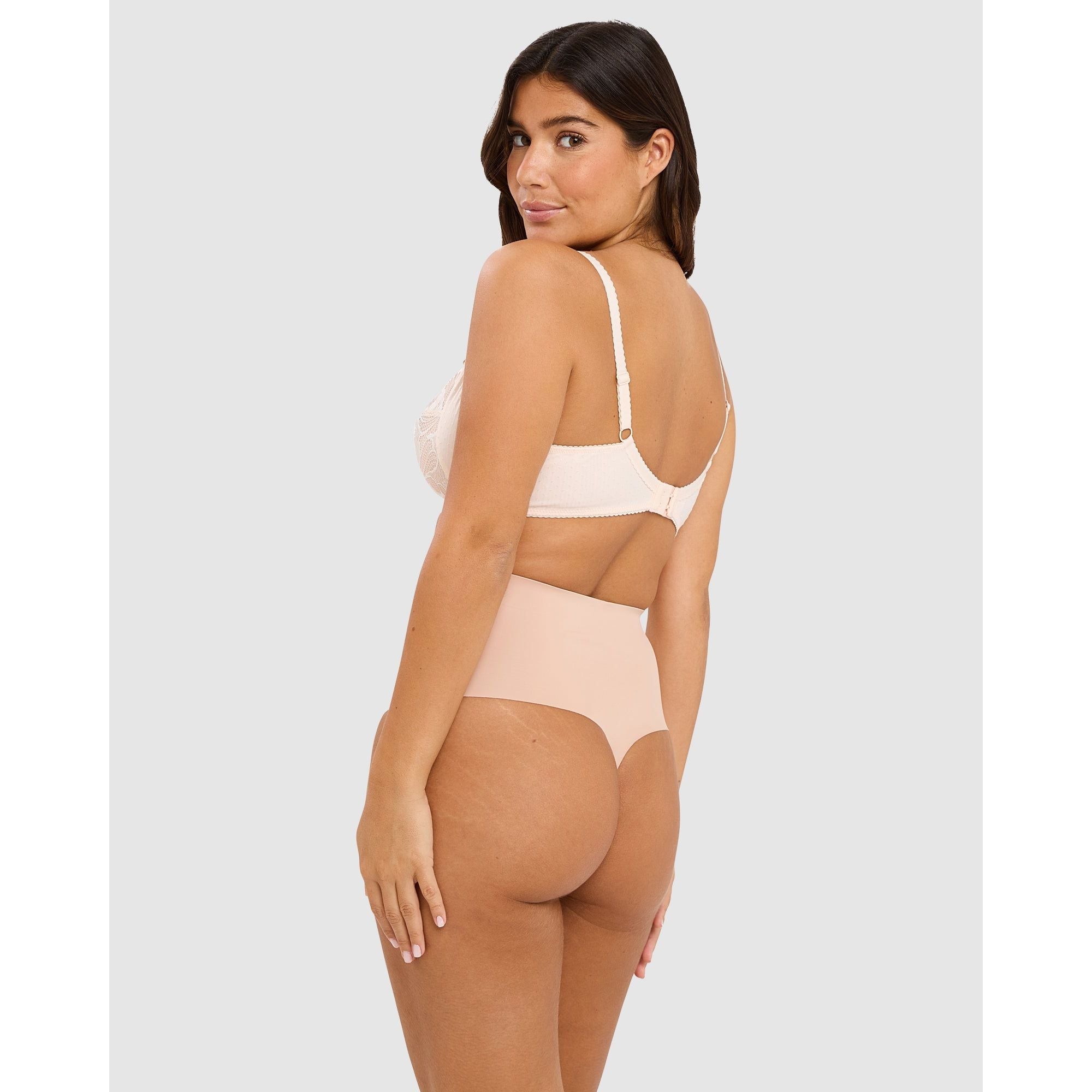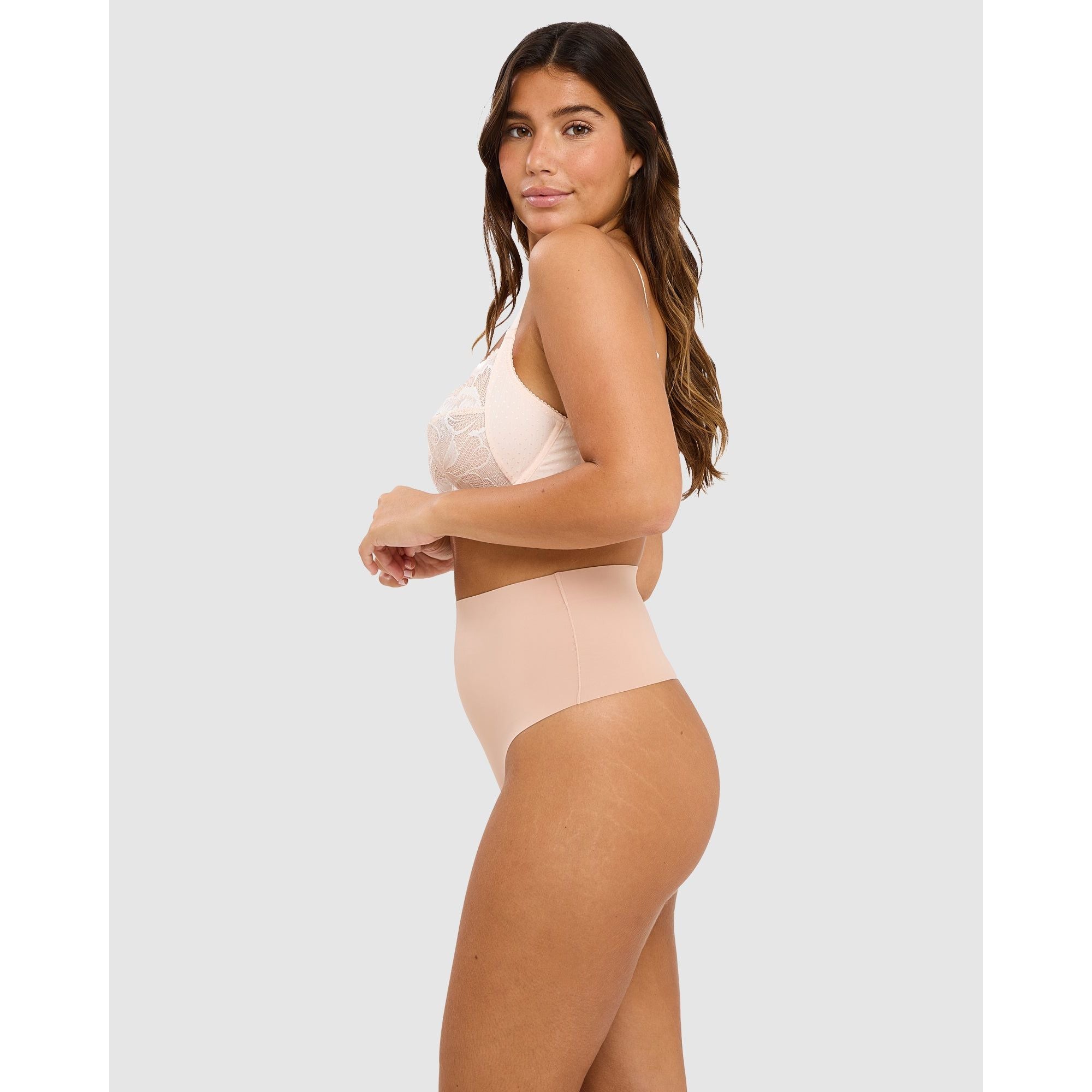 Get a slimmer, sleeker look under your clothing without losing your curves in this high-waisted shaping thong, which smooths your tummy and waist without flattening your bottom or creative visible panty lines. Created with flat finishes, elastic-free edges and a soft 'second skin' microfibre fabric, it offers medium control shaping with maximum comfort.