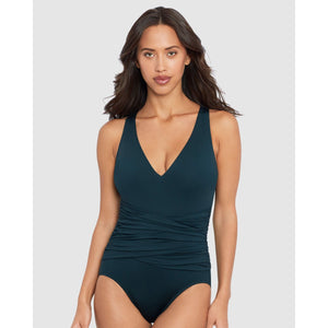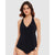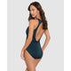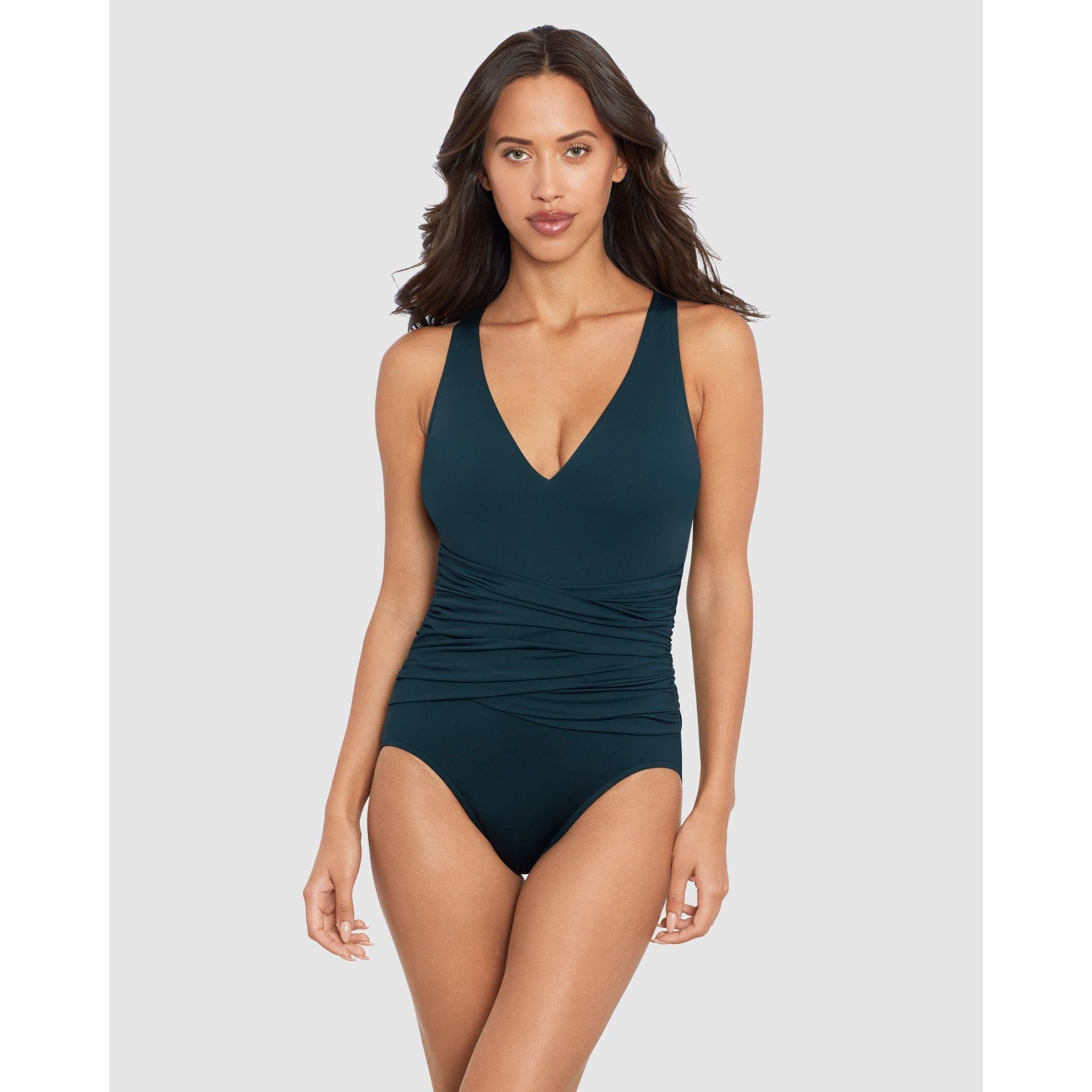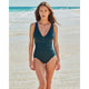 Flatter your curves from every angle with this open back swimsuit, which shows plenty of skin at the back plus flaunts your cleavage via a plunging V neck front. But best of all is the knot-detail panel of shirred fabric which wraps around the mid-section, highlighting your waist for an instant hourglass effect.