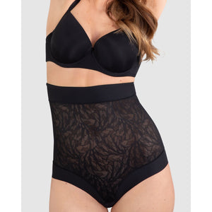 Finally, lace shapewear that gives you the slimming and smoothing effect you crave without sacrificing style! This high waist tummy control brief is practically seamless and made from flat-finish Powerlace, for an invisible look under even close-fitting outfits.