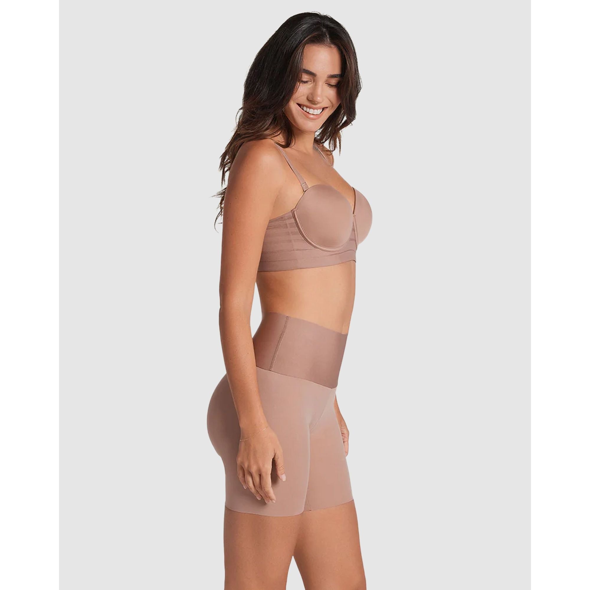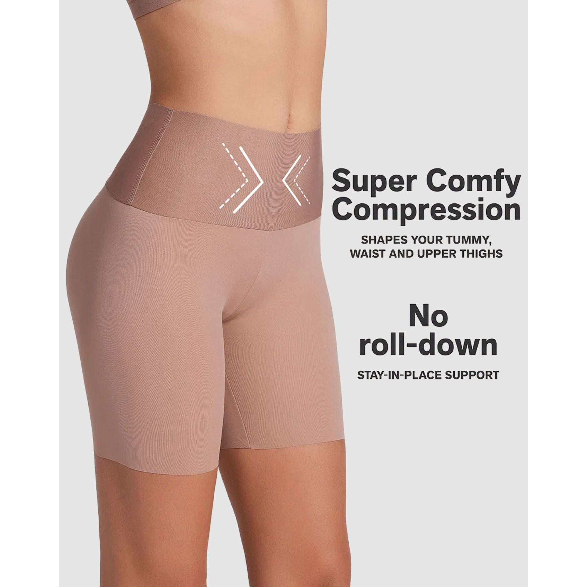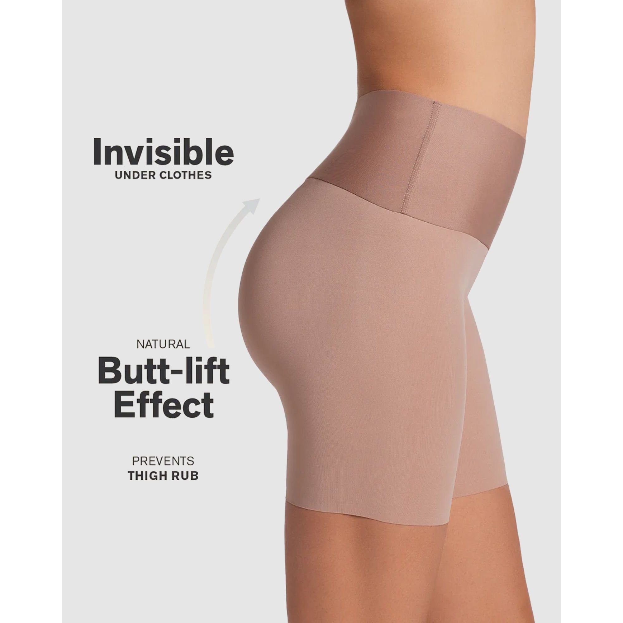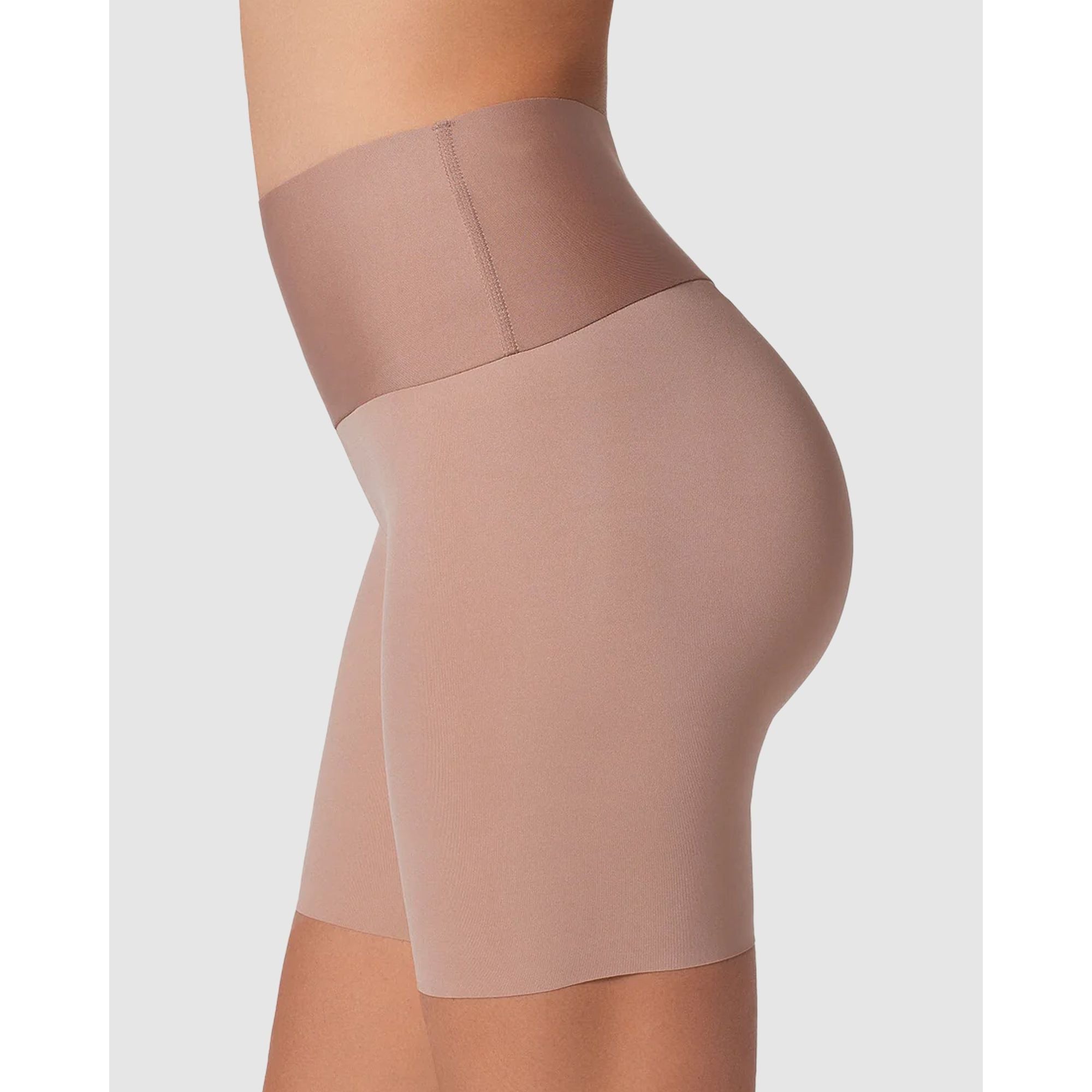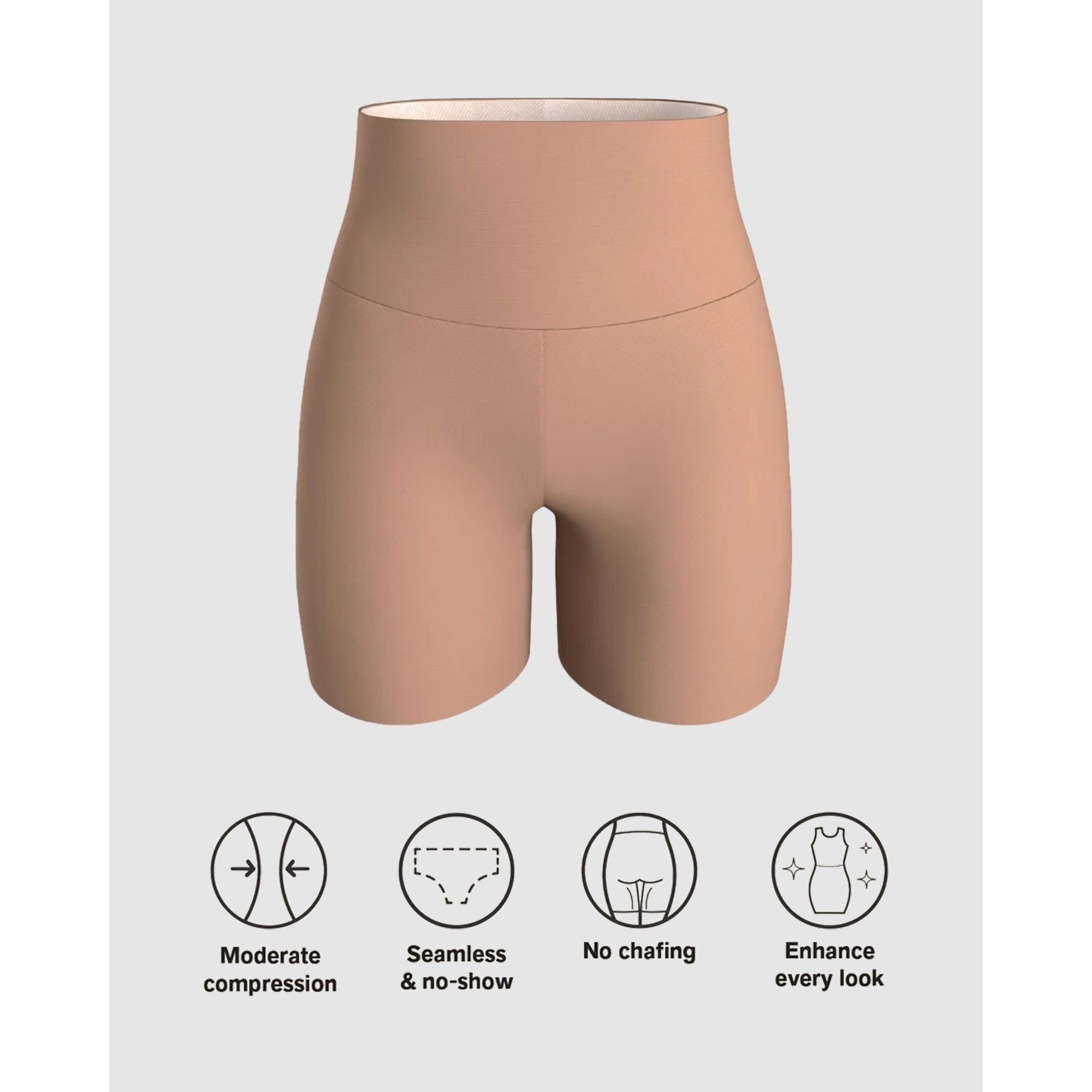 Get a perfectly smooth, sculpted look under your clothing while also avoiding thigh chafe in this sleek slip short, designed to have a seamless finish and a natural butt-lifting effect. Delivering moderate compression to shape your tummy, waist and upper thighs, the high waistband won't slip down and the laser-cut leg bands won't show through even the closest-fitting of outfits.