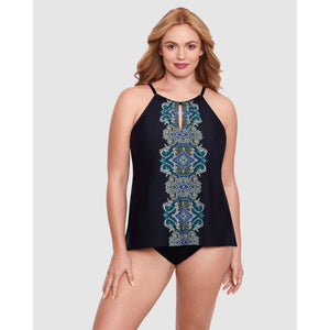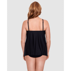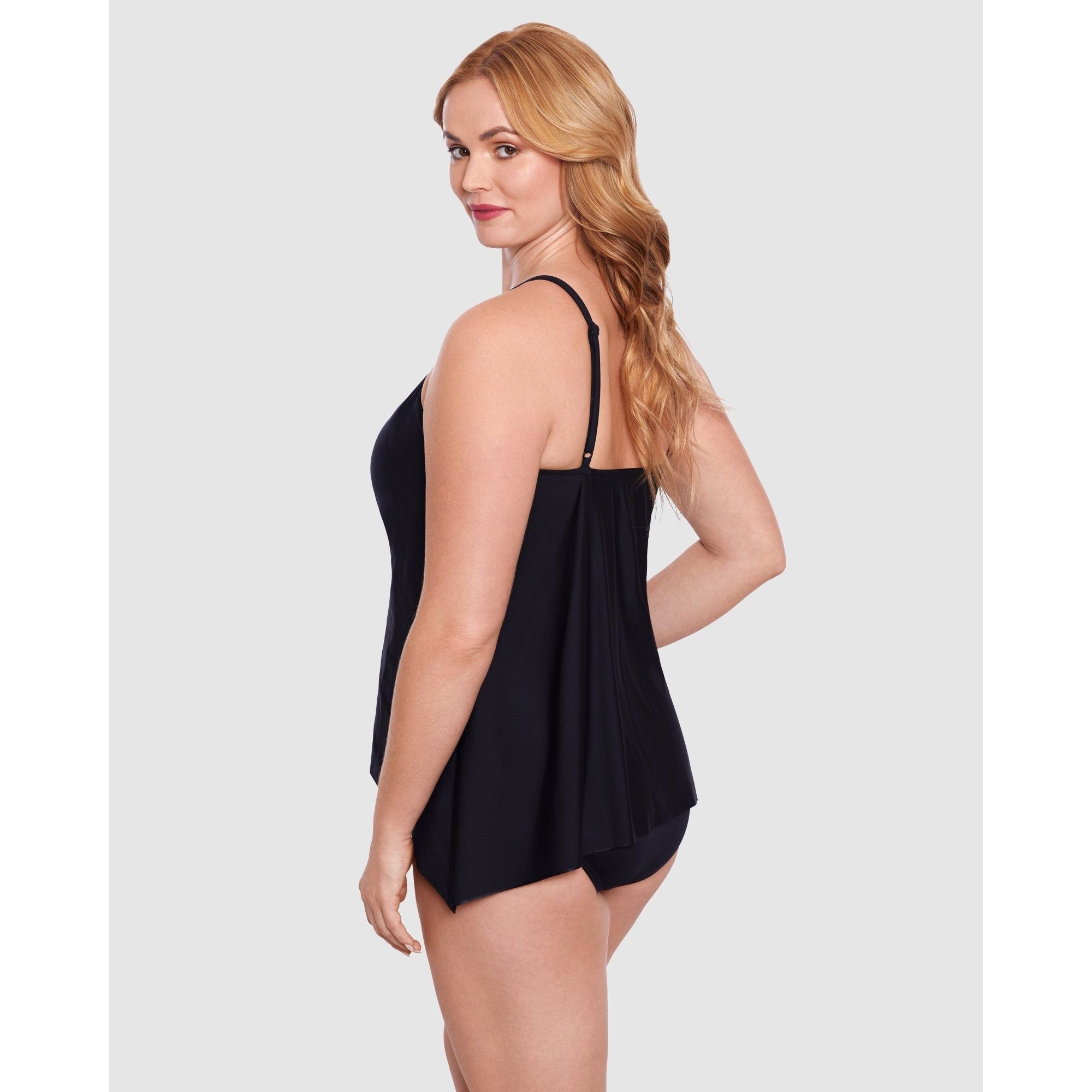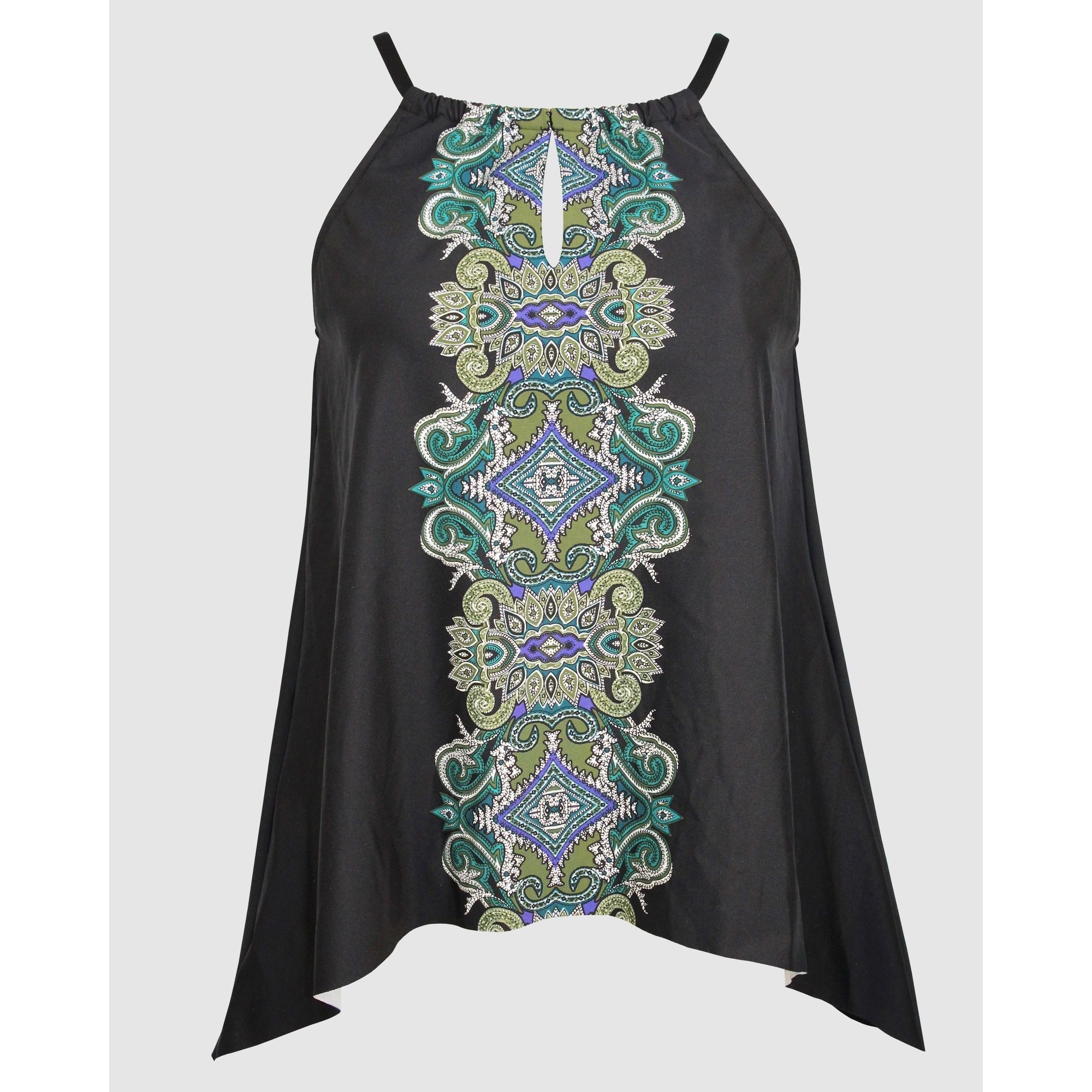 Hit the waves in style with this plus size tankini top, which has soft cup bust support hidden beneath the floaty, tummy-hiding outer. It's a high neck tankini top with an adjustable peephole centre to control the neckline coverage, and also has adjustable straps to perfect the fit.