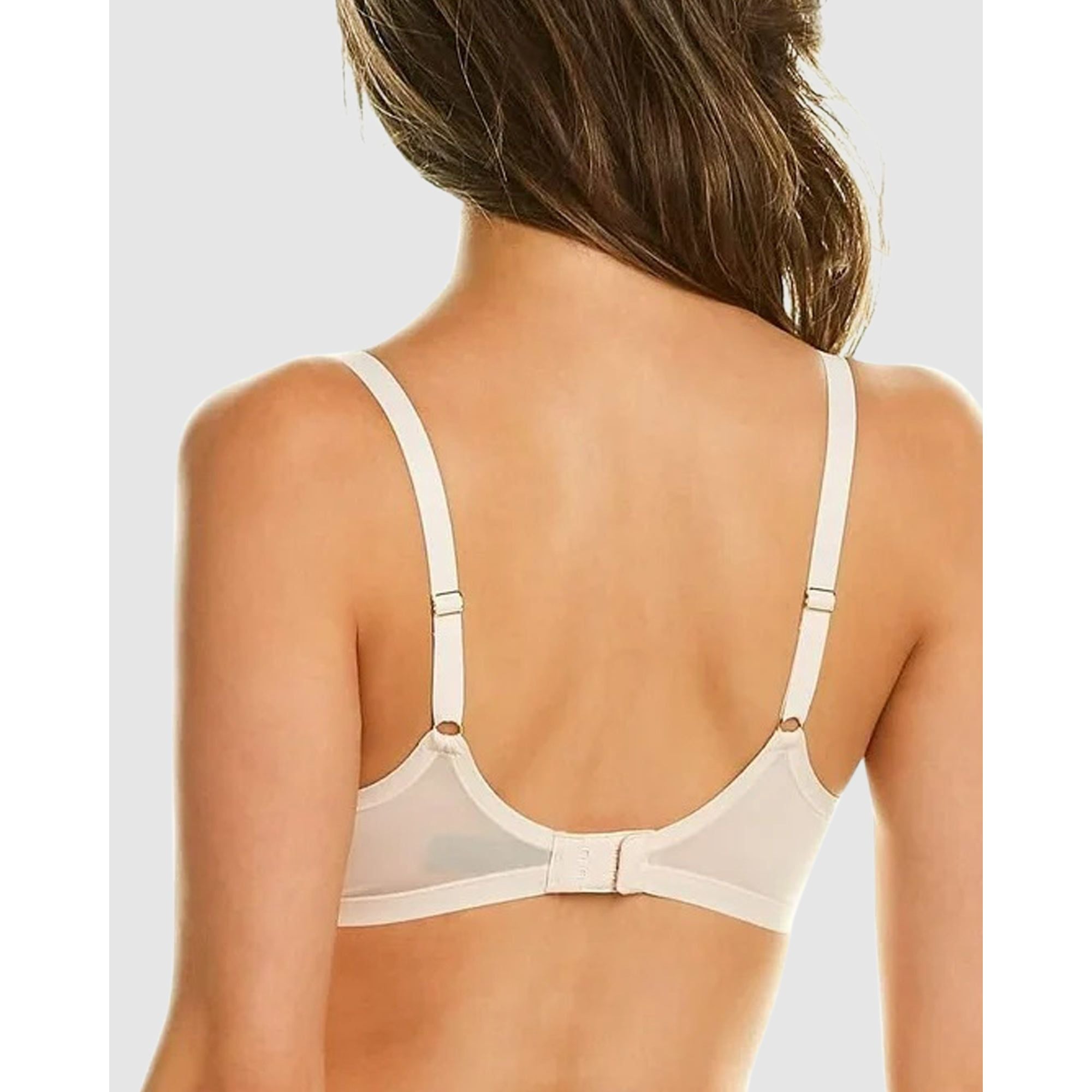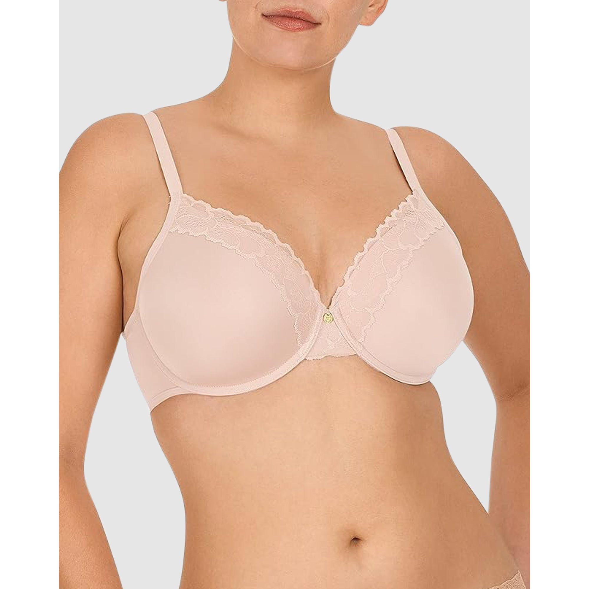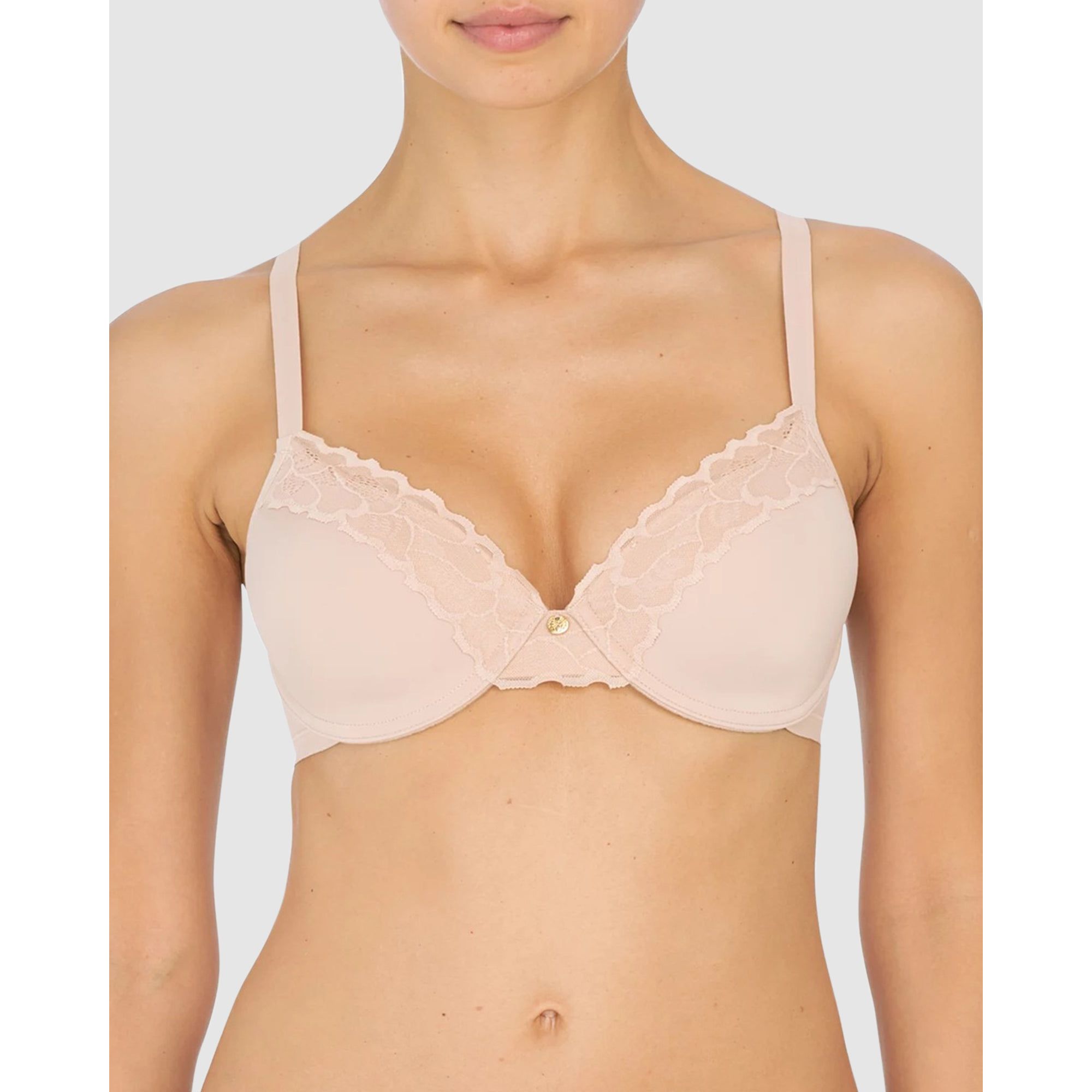 Designed to offer the smooth, lifted shape of a basic t-shirt bra but with an extra flourish of feminine style, this wired contour bra has stretch foam cups and is made with cool-touch fabric that keeps you comfortable throughout the day. The neckline is trimmed with a wide band of lace, and it's finished with a golden charm detail between the cups to match the brand's signature gold hardware on the straps.