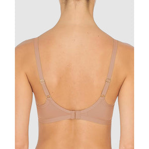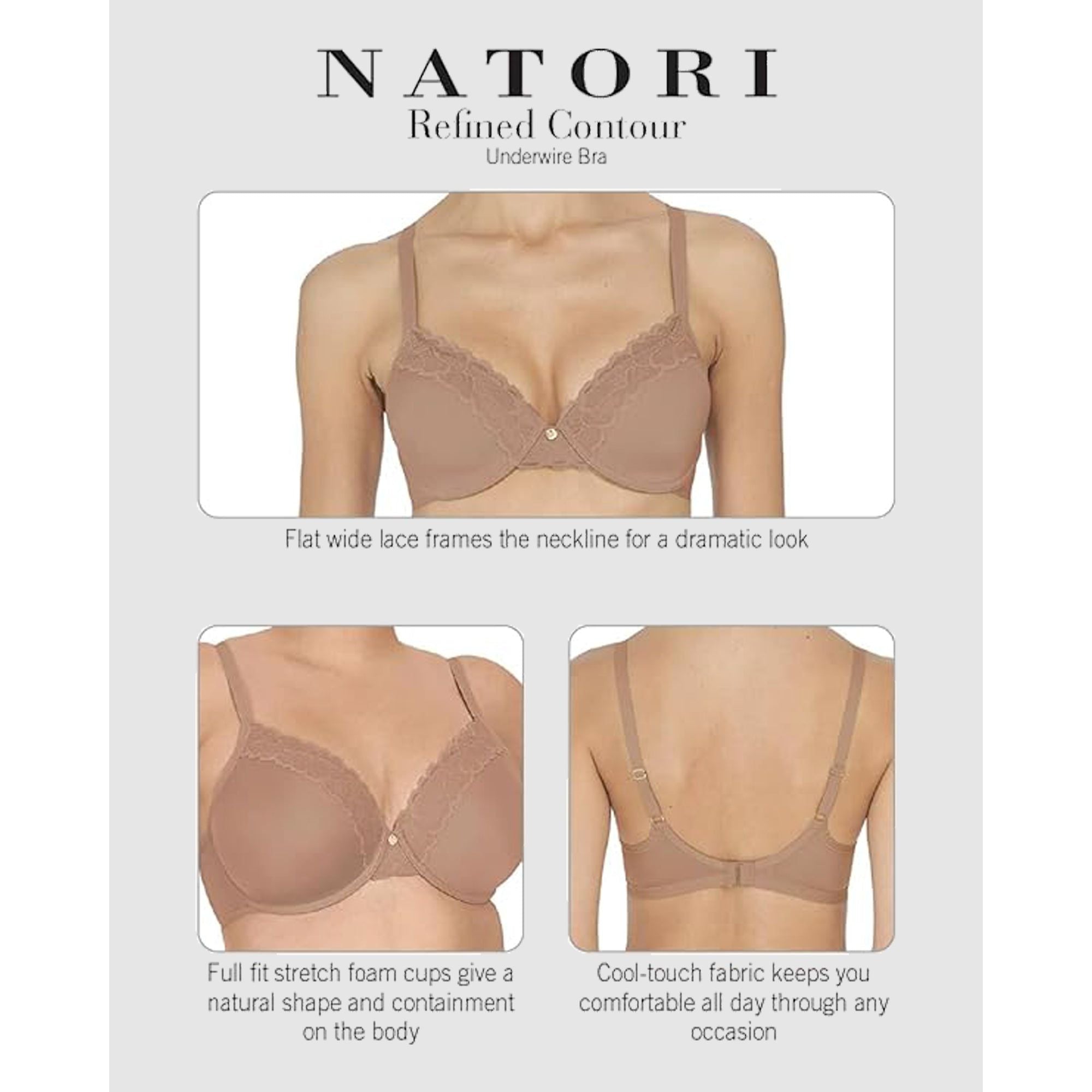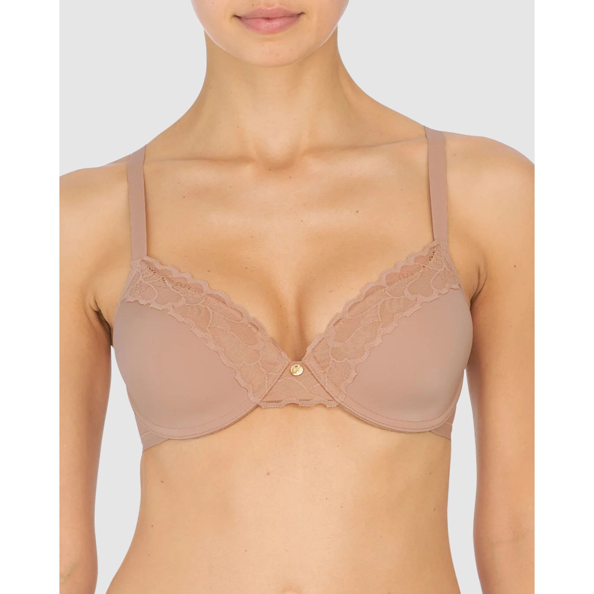 Designed to offer the smooth, lifted shape of a basic t-shirt bra but with an extra flourish of feminine style, this wired contour bra has stretch foam cups and is made with cool-touch fabric that keeps you comfortable throughout the day. The neckline is trimmed with a wide band of lace, and it's finished with a golden charm detail between the cups to match the brand's signature gold hardware on the straps.