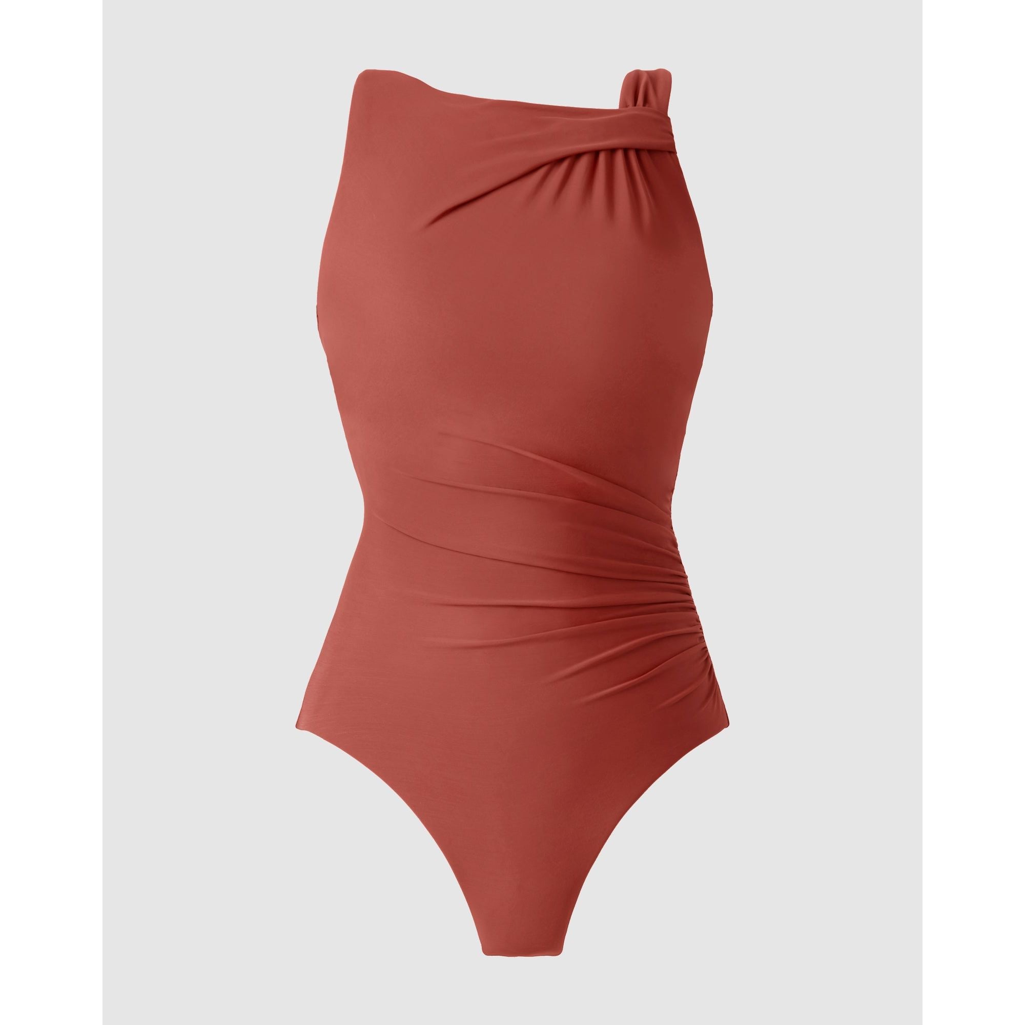 High neck design with stylish draped detail