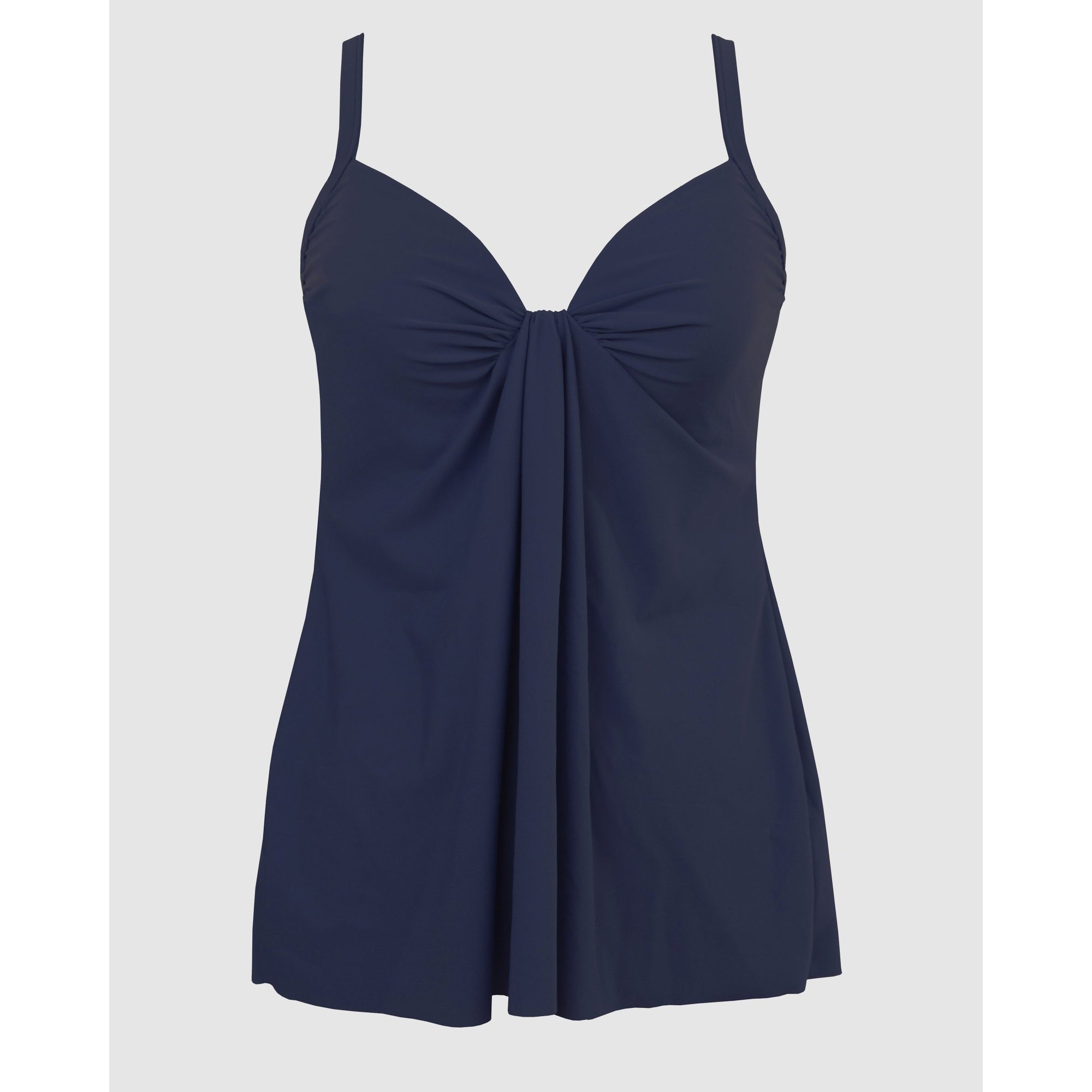 This draped tankini top has been designed especially to flatter all figures, with a loose and flowing fit that conceals the tummy, plus underwired cups with foam lining for bust-enhancing support. Finished with stylish gathering detail at the centre of the neckline. Pair this slimming tankini top with any of Miraclesuit's perfectly colour-coordinated separate bottoms.