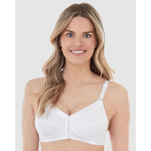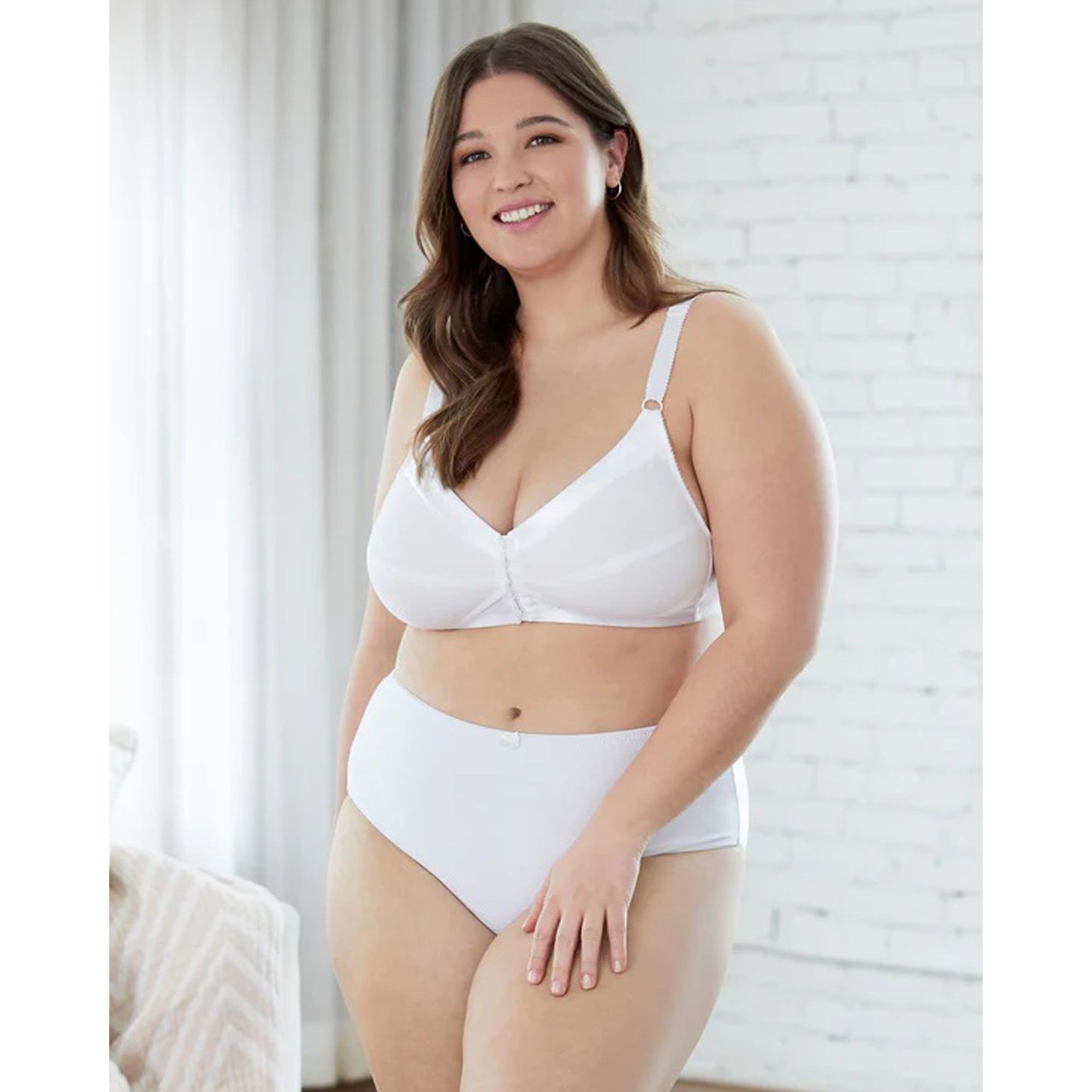 Enjoy easygoing support, a flattering natural-look shape, and the convenience of an adjustable front closure with this ultra-comfortable wirefree bra. Made primarily from cotton for softness and breathability (plus trims in glossy satin), it feels light on the body while still delivering the secure fit you want from your everyday underwear.