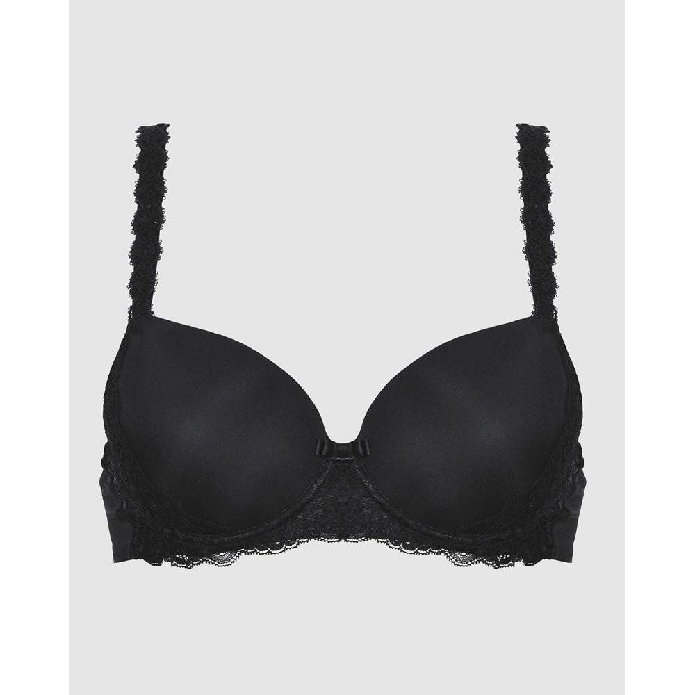 Looking for a smooth bra that won't show through your clothing, but which still has enough pretty touches to make you feel stylish? You've found it: this t-shirt bra has seamless, padded cups which are overlaid with beautiful lace at the sides, with a matching lace cradle and stunning decorative straps.