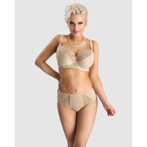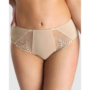 A mid-rise brief with a full cut back, this elegant underwear choice is made from soft microfibre fabric and soft elastics that won't dig in. Two large panels of embroidered tulle adorn the front, and the gusset is lined with cotton for breathable comfort.