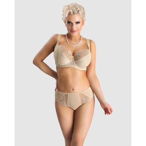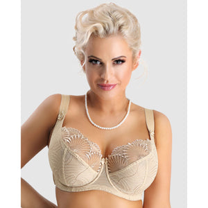 Perfect for both everyday wear and special occasions, you'll love the support every bit as much as the beautiful look of this large cup bra, which is made from a high-end embroidery that's left sheer on the upper cup. Whether you need an F cup bra, a K cup bra, or beyond, the 3 part cup bra design of Selena lifts and rounds for excellent full bust shaping without the need for bulky padding.
