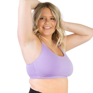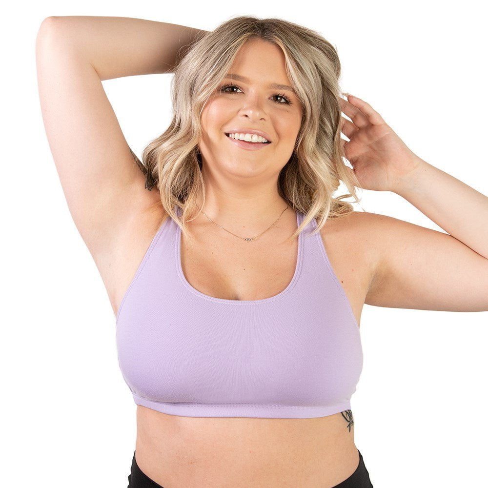 The Serena plus size sports bra is the perfect, low-impact style for your weekly yoga class. Made from a double layer of breathable, stretchy cotton, it has a racerback shape to distribute weight and leave you feeling comfortably supported. In fact, it's so comfortable you'll also love this wirefree sports bra simply for lounging!