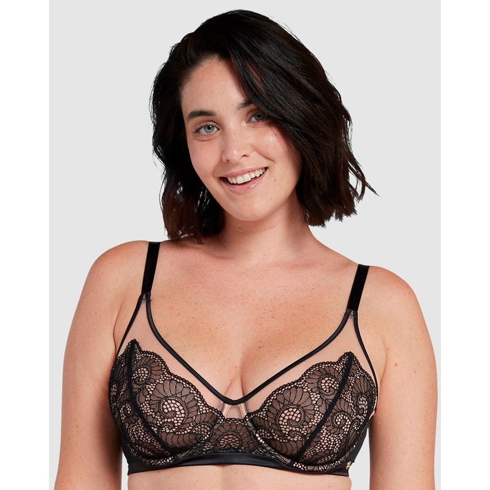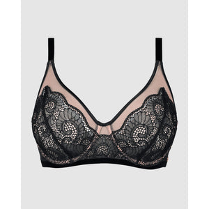 Sheer tulle, lace and satin trims combine to create an elegant and sexy bra that offers great support all the way up to an E cup. The plunge bra shape frames your cleavage and works perfectly under most necklines, for a glamorous look you can wear everyday as well as for special occasions.