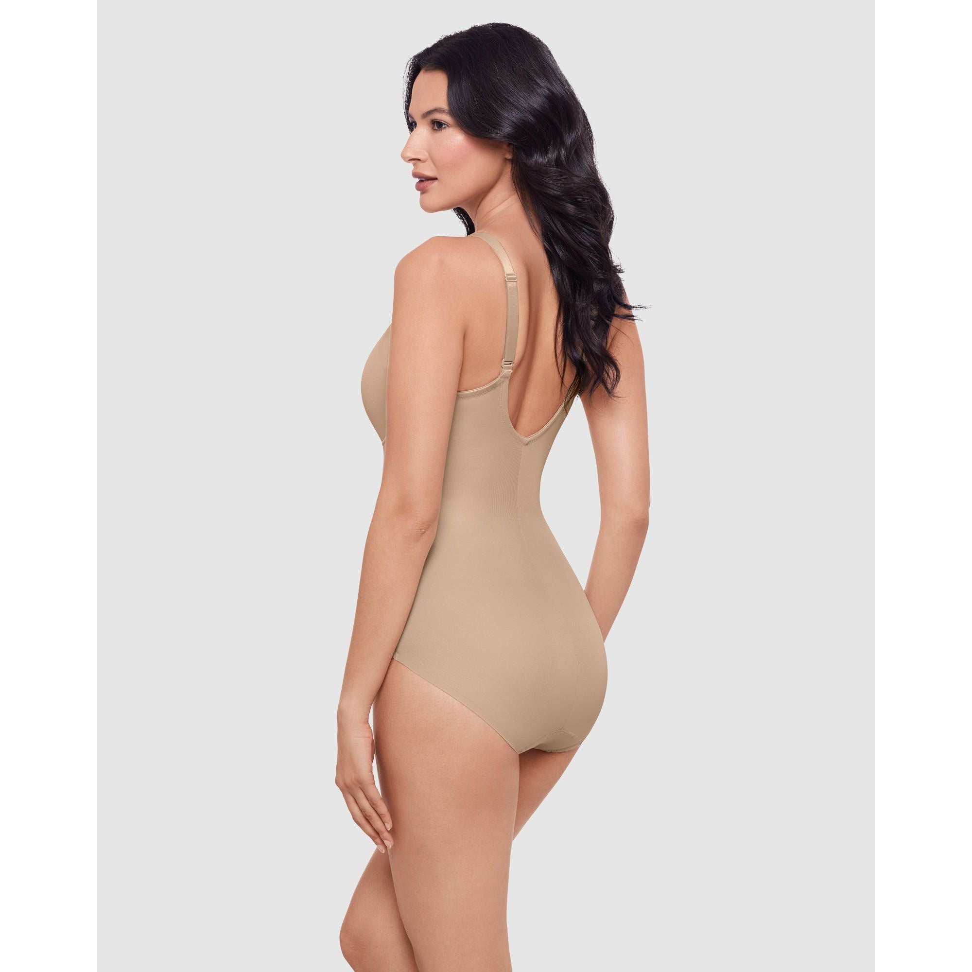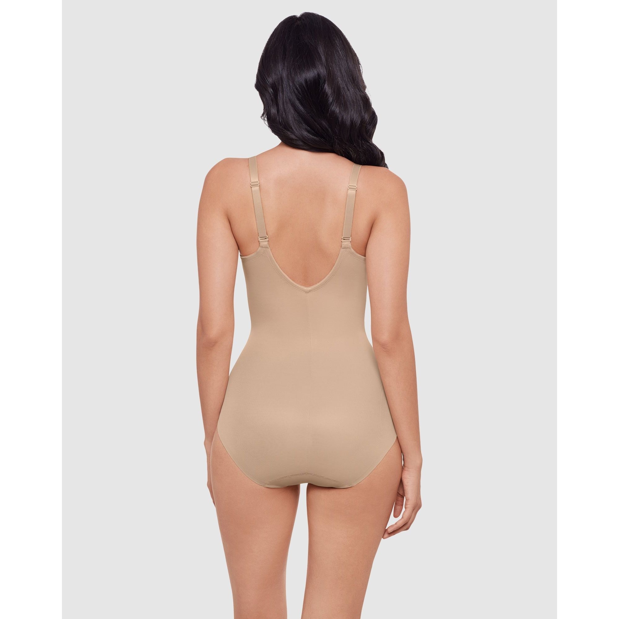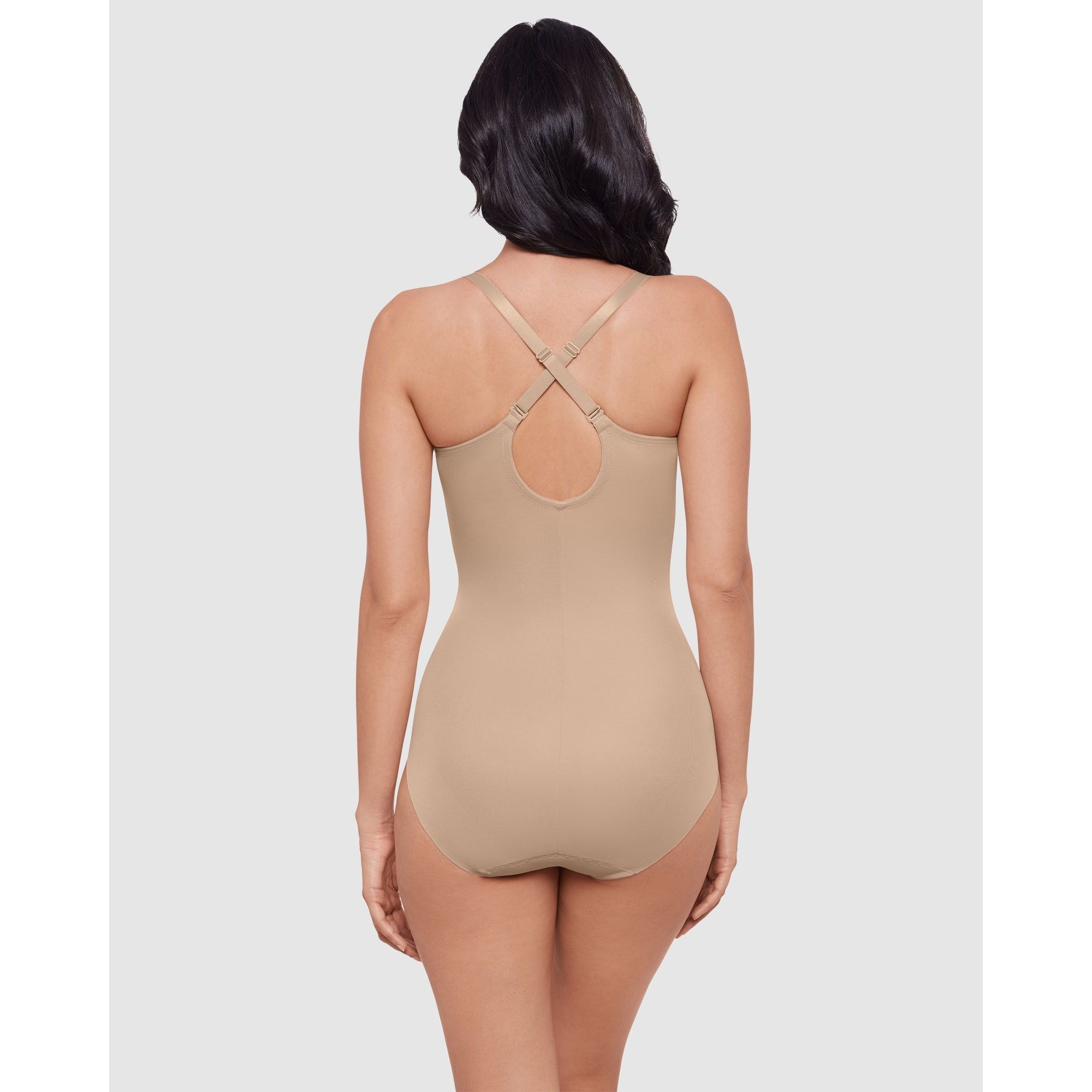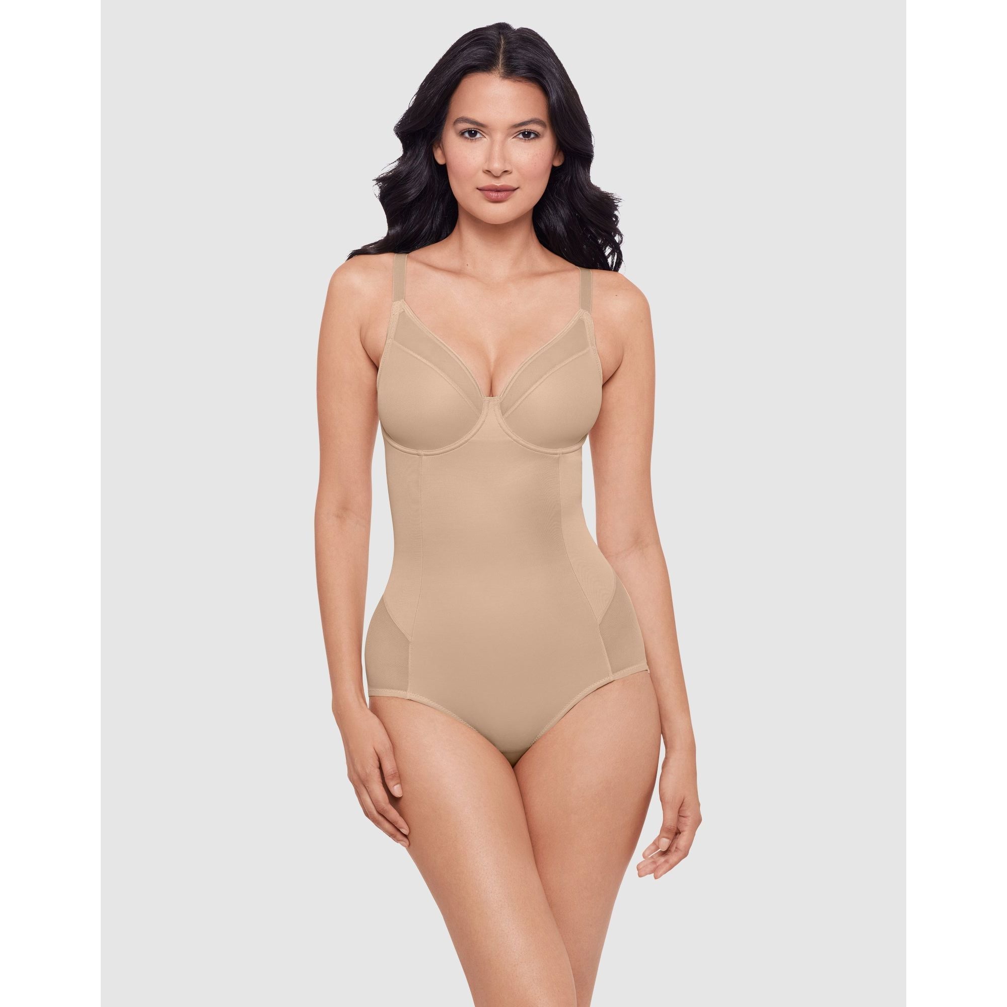 This extra-firm control shapewear bodysuit is the ultimate base piece when you want to look your best: a double-layered tummy support panel flattens your midriff, underwired cups with foam padding lift and shape your bust, and panels of sheer mesh add cooling comfort while also creating a more flexible fit. Other fantastic details on this bodyshaper include adjustable straps that can be crossed over, a convenient hook-and-eye gusset fastening, and Wonderful Edge® silicone at the backs of the leg openings to prevent them from riding up or rolling over.