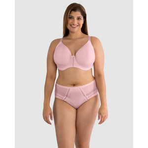 This supportive t-shirt bra uses innovative spacer cup technology to create smooth, moulded foam cups which feel incredibly lightweight and breathable. Side slings lift and shape the bust, and ribbon lacing up the centre-front creates a stylish look that you'll love to wear on a daily basis.