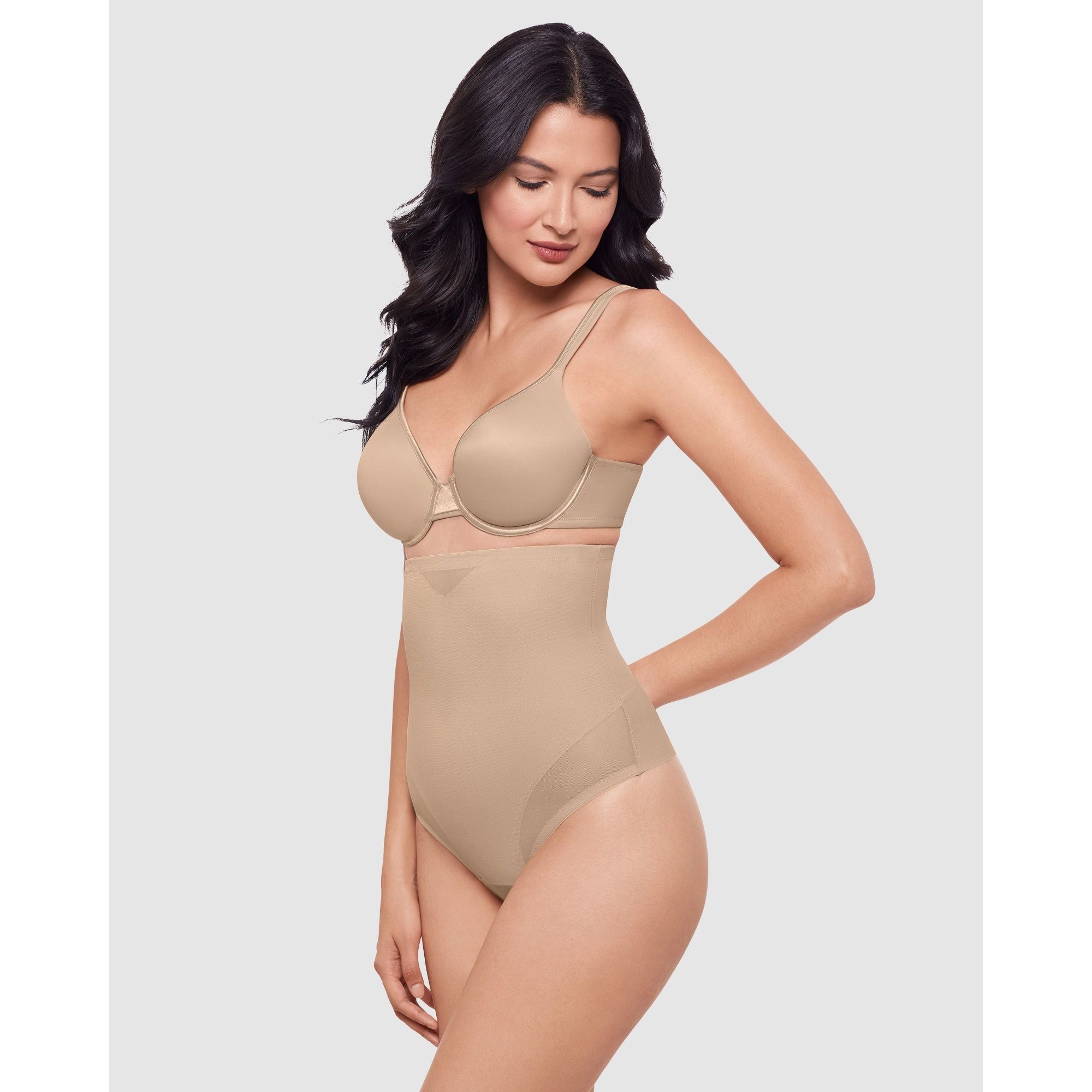 Get a sleek, sculpted look without any visible panty lines in this high waist thong, which provides extra-firm control shaping to flatten your tummy, slim your waist, and smooth your back. Breathable mesh inserts create a more flexible fit for improved comfort, and Wonderful Edge® silicone at the bottom of the back ensures a stays-put fit that won't roll over for a flat, invisible finish under clothing.