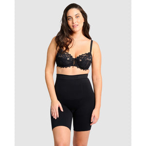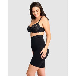 Firm thigh control meets tummy and waist-smoothing shapewear in this comfortable slimming short, which is double-layered at the thigh for maximum shaping. A double silicone strip ensures the high waistband won't roll over or slip down, for a flawlessly smooth look under your clothing.