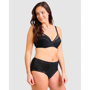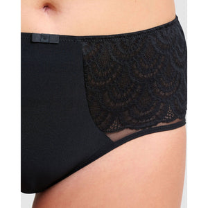 Enjoy a comfy fit and elegant look in these full cut shorties, which are made primarily from soft-feel microfibre with stylish tulle and lace panels at either side. This plus size brief is shaped to deliver full rear coverage while also flattering your curves, and is trimmed with sheer tulle inserts along the back of the leg line.