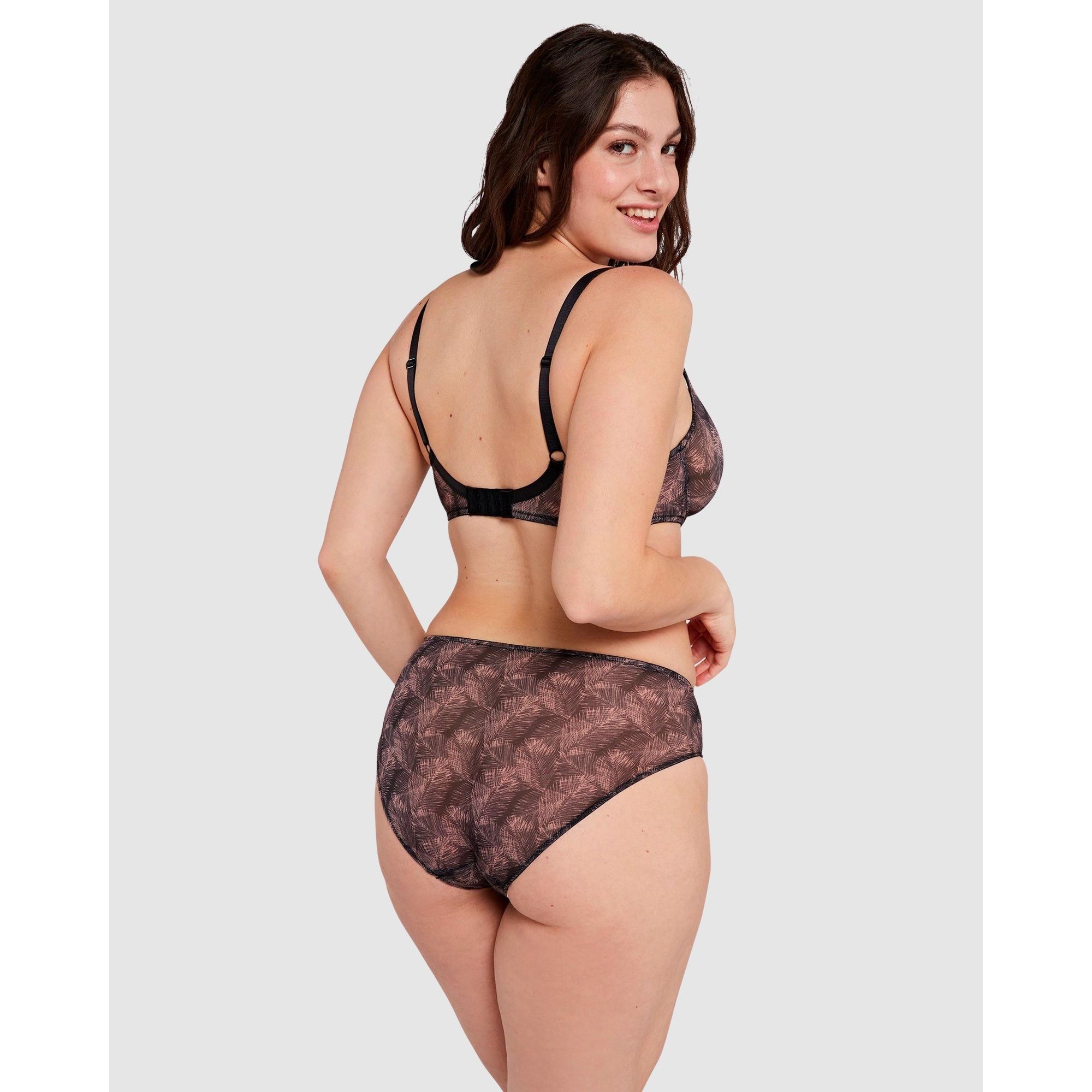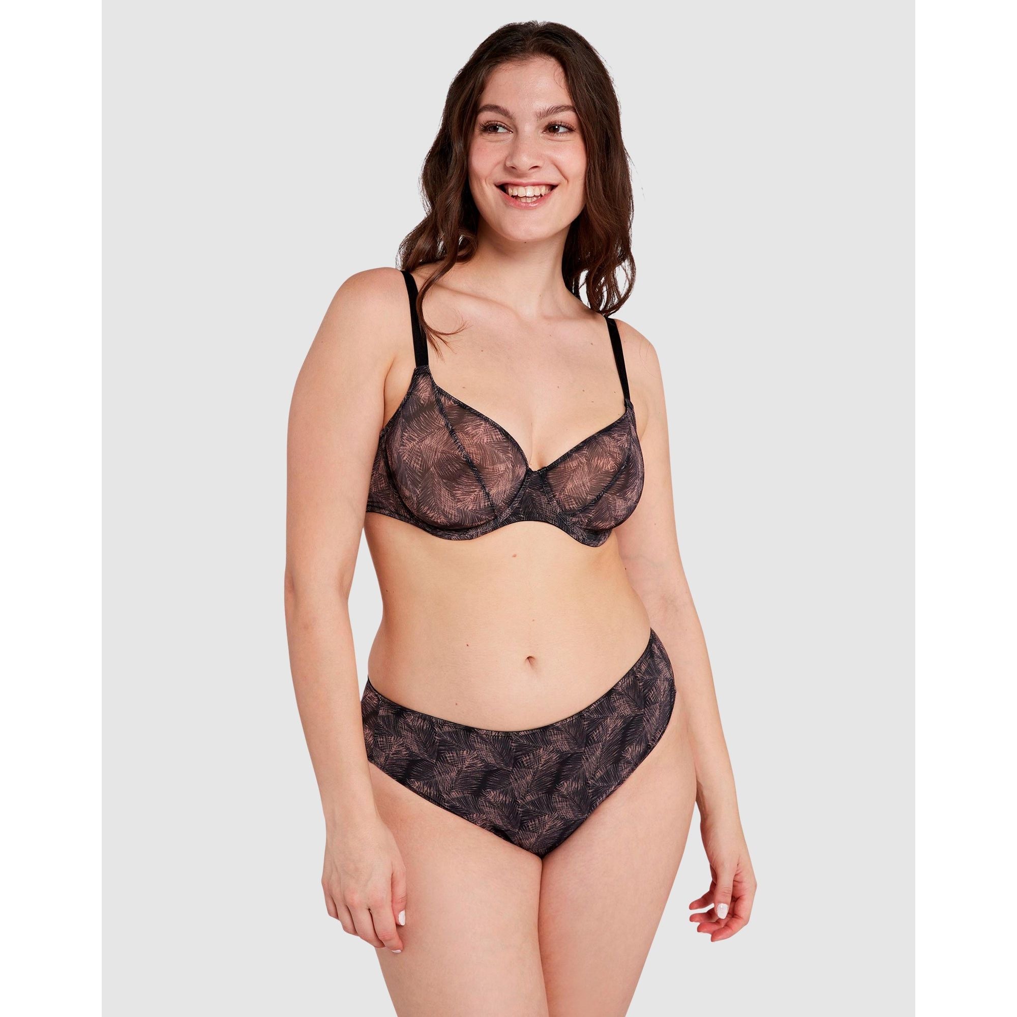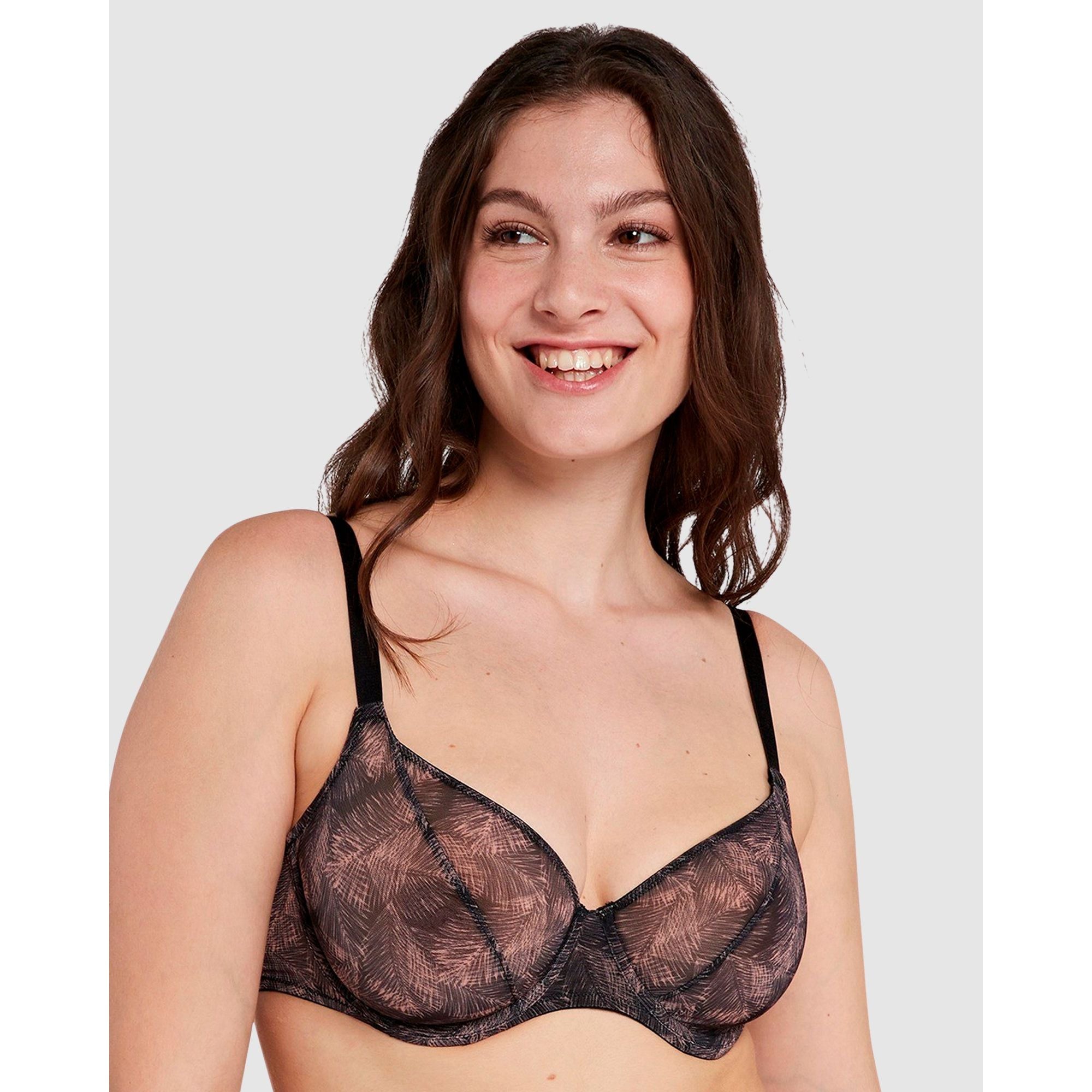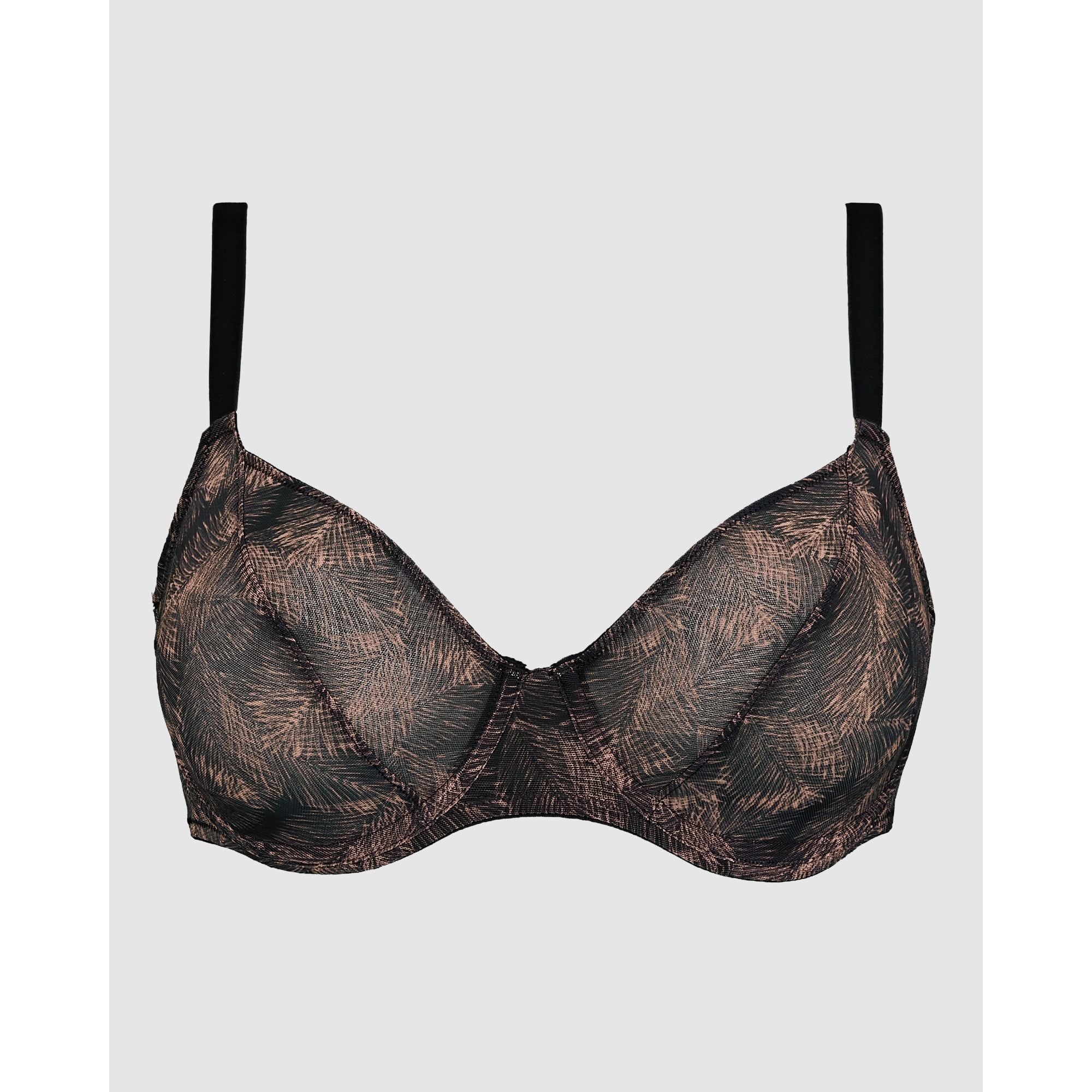 So Pure Fantaisy Sustainable Tulle Wired Full Cup Bra-Print Black & Nude Palms