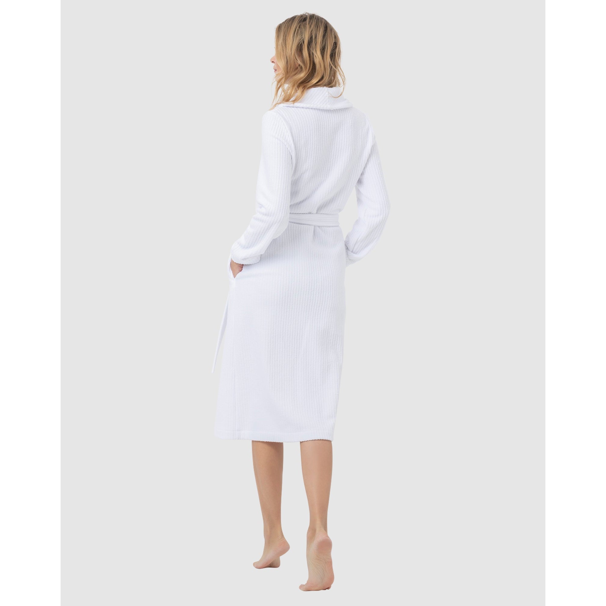 Wrap yourself up in cosy comfort with this cotton robe, made from a thick and soft terry cloth with a ribbed design. The lounge robe or bathrobe has a wide shawl collar to keep your neck warm, a tie at the waist for flexible sizing, and discreet pockets at either side seam.