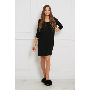 Whether you wear it as a nightshirt or just to chill in during the daytime, you'll love the super-soft comfort of this short loungewear dress which is made from breathable viscose modal. Design features include a free-flowing cut thanks to box pleats below the neckline, 3/4 length sleeves, and casual dropped shoulders.
