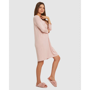 Whether you wear it as a nightshirt or just to chill in during the daytime, you'll love the super-soft comfort of this short loungewear dress which is made from breathable viscose modal. Design features include a free-flowing cut thanks to box pleats below the neckline, 3/4 length sleeves, and casual dropped shoulders.