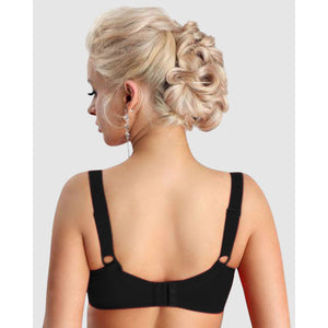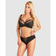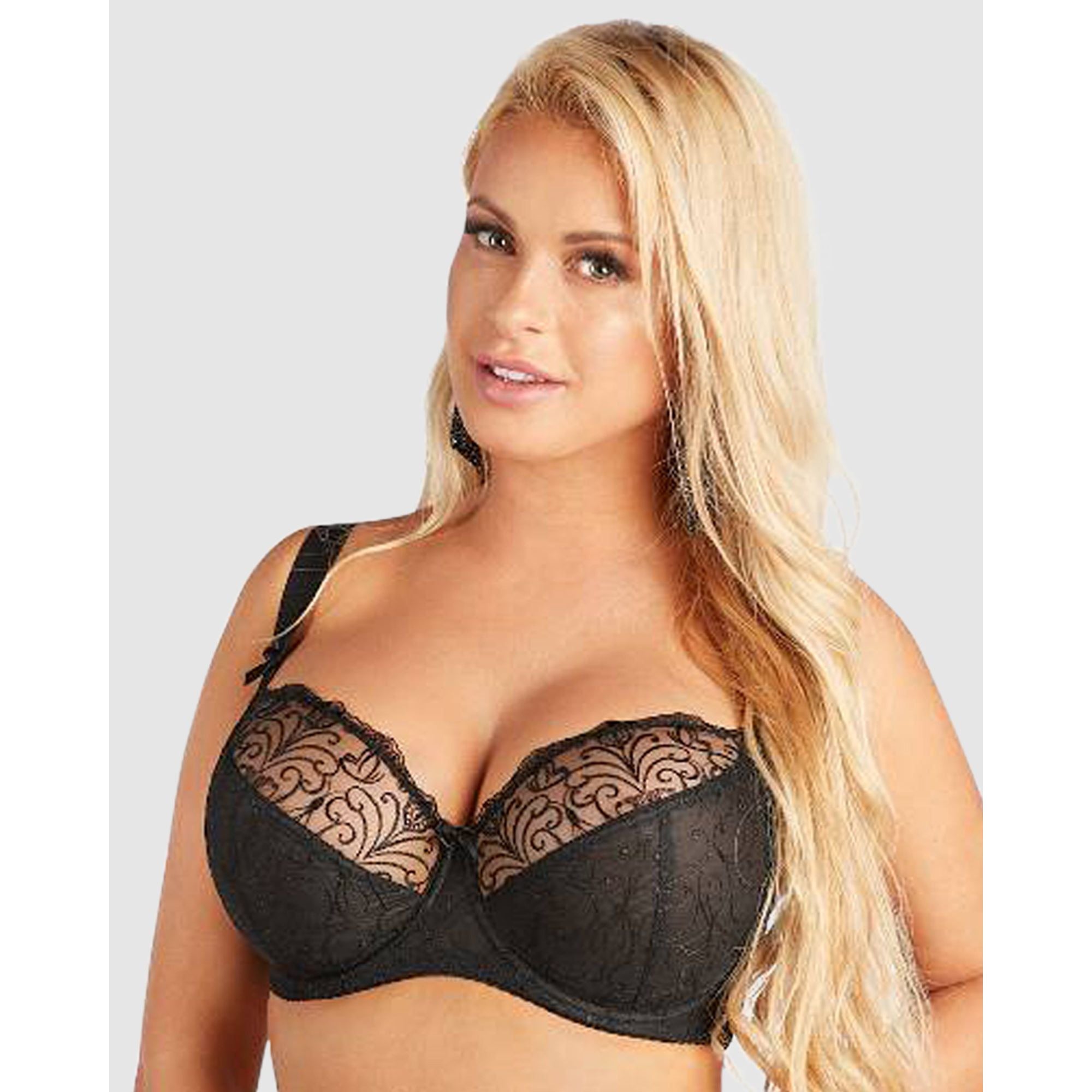 Sultry elegance meets excellent full bust support in this large cup bra made from a beautiful custom embroidery that features the Nessa butterfly logo. 3-part cups, a strong mesh band and plenty of full bust know-how make this an incredibly supportive bra for even the largest of cup sizes, but it still maintains a light and delicate look thanks to the sheer panels that trim the top of each cup.