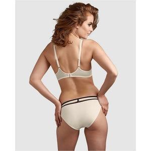 This ivory push up bra is a must have in your wardrobe. The ivory microfiber fabric is framed with black piping for an edgy look. As a finishing touch playful frills were placed on top of the cups. Padding gives you extra support while small cushions and closely fitted wires give you a dazzlingly deep cleavage. The A-cup has some extra padding. marlies|dekkers Space Odyssey collection is designed for ladies aiming for the stars. She was inspired by Stanley Kubrick’s “2001: A Space Odyssey”. Wear this ivory bra and dare to be a woman with a mission!