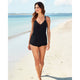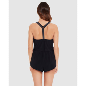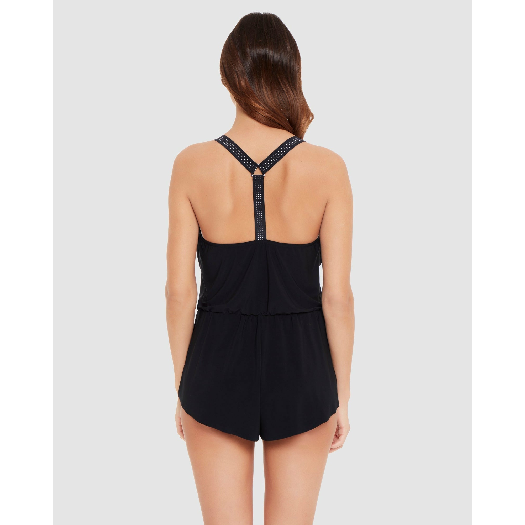 Strut your stuff by the sea in this eye-catching romper swimsuit. Hidden away inside is a tummy control swimsuit that slims your figure, while the loose-fit romper outer completely hides any lumps and bumps. Not that it matters - all eyes will be on the stylish halterneck, T-back straps, which are dotted with tiny silver studs to catch the sunlight!