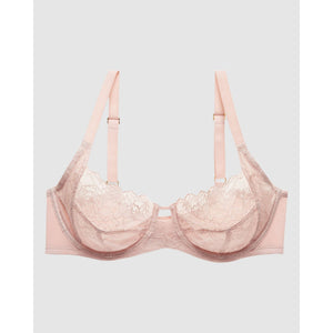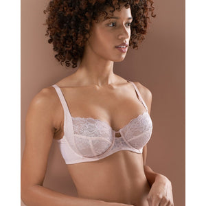 Designed for beauty and engineered especially for fuller figures, this supportive bra uses a combination of semi-rigid, cushioned straps and seamed, 4 part cups with side slings to deliver maximum lift and shaping. Made from scallop-edged lace, it's lined with a soft backing on the side sling and with non-stretch tulle in the lower cup to further enhance support.