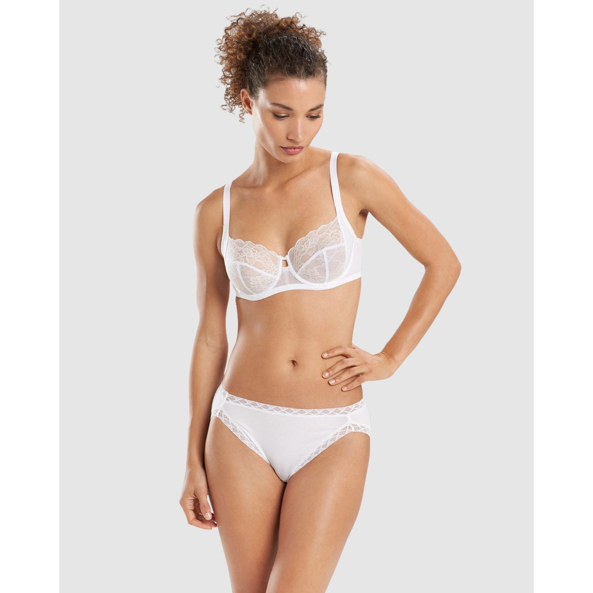 Designed for beauty and engineered especially for fuller figures, this supportive bra uses a combination of semi-rigid, cushioned straps and seamed, 4 part cups with side slings to deliver maximum lift and shaping. Made from scallop-edged lace, it's lined with a soft backing on the side sling and with non-stretch tulle in the lower cup to further enhance support.