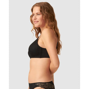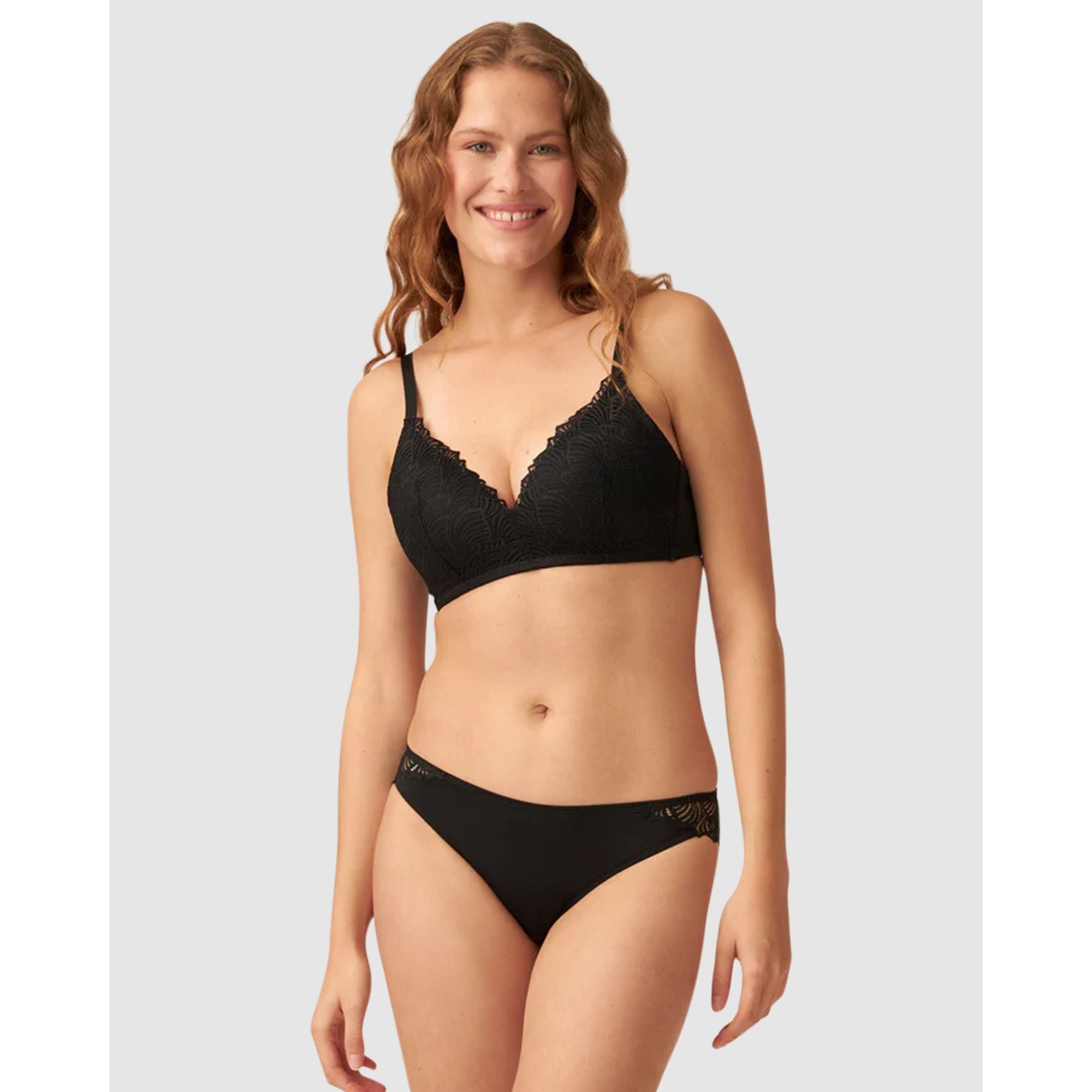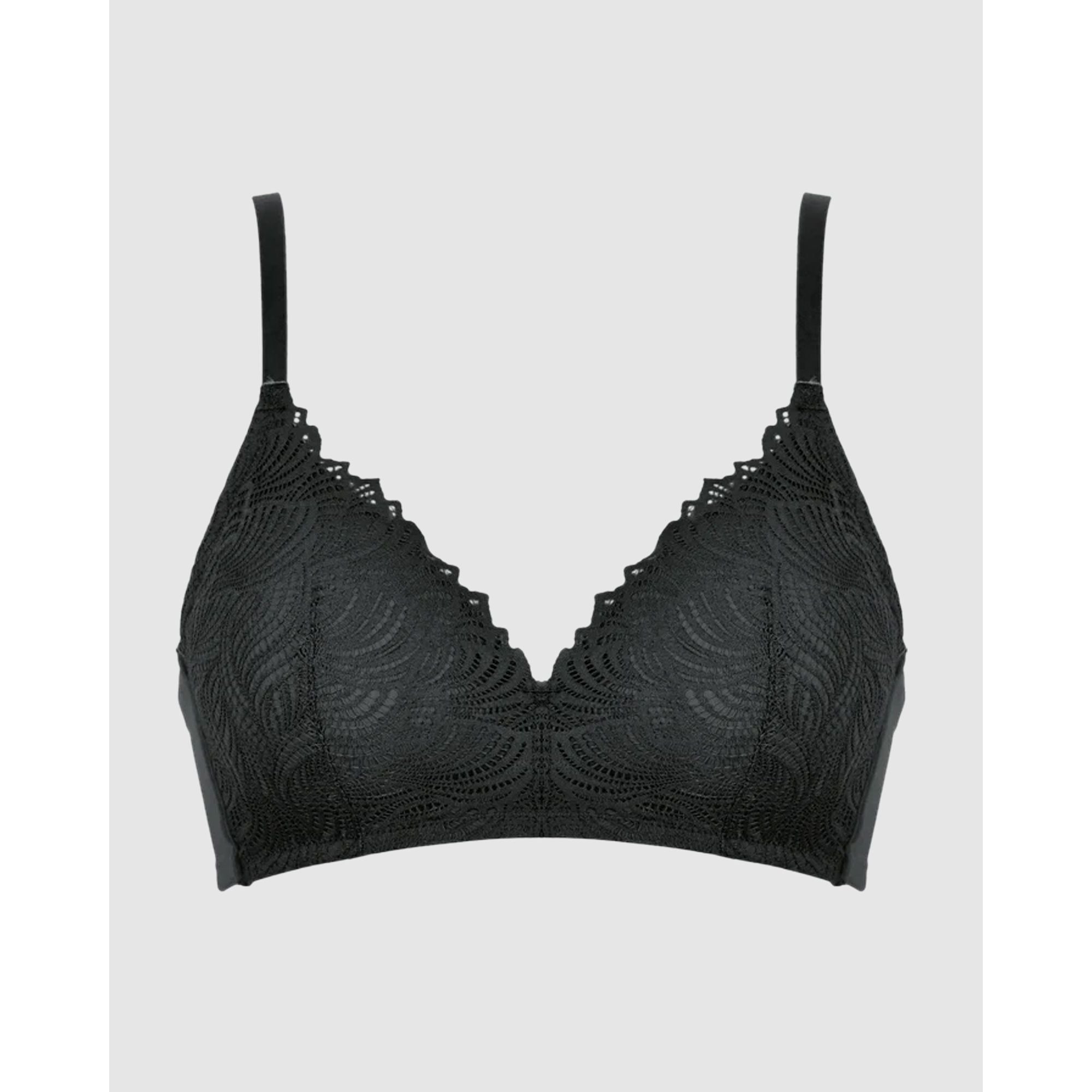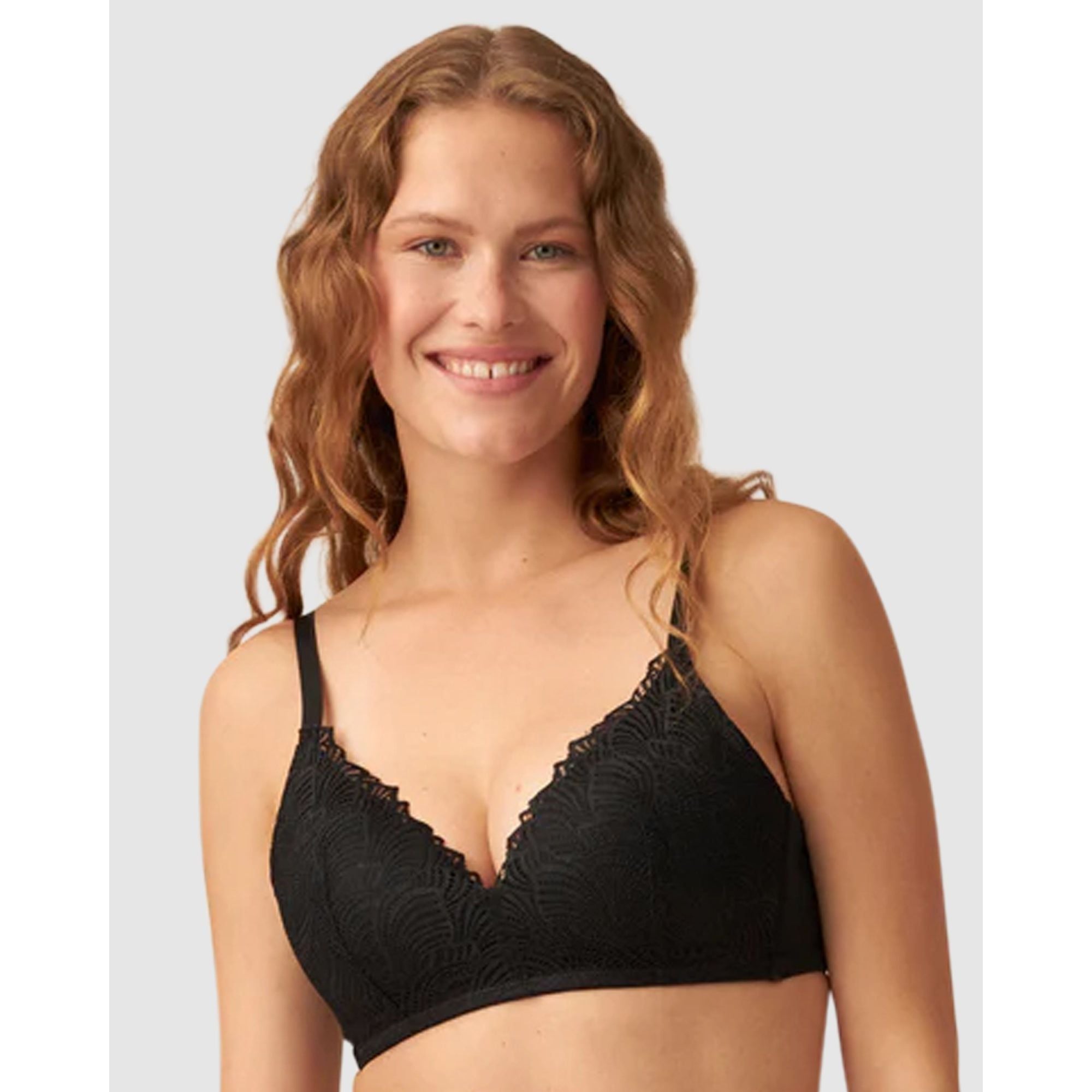This lace-topped wirefree bra is the perfect choice for anyone looking for sustainable lingerie that offers both comfort and support. With a delicate, shimmering lace design and soft cups, this bra is both stylish and comfortable, making it a great addition to any lingerie collection.
