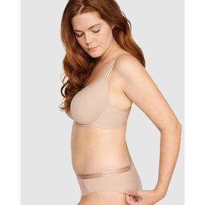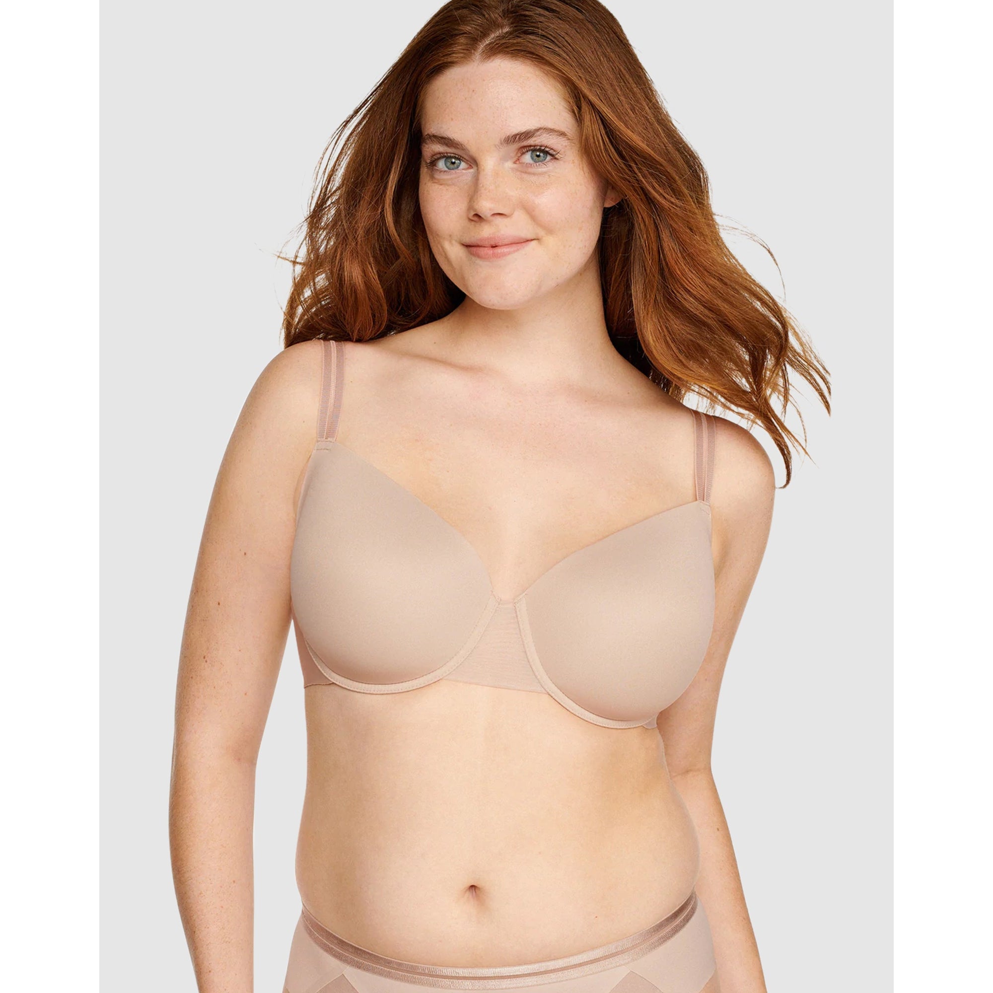 With this seamless t-shirt bra, you truly can have it all: fabulous support, excellent comfort, 'no show' smoothness under your clothing, and a minimalist look that feels modern rather than boring! It's a wired bra with smooth cups and sleek Clean Cut edges, made truly special thanks to unique shoulder straps with transparent centres.