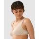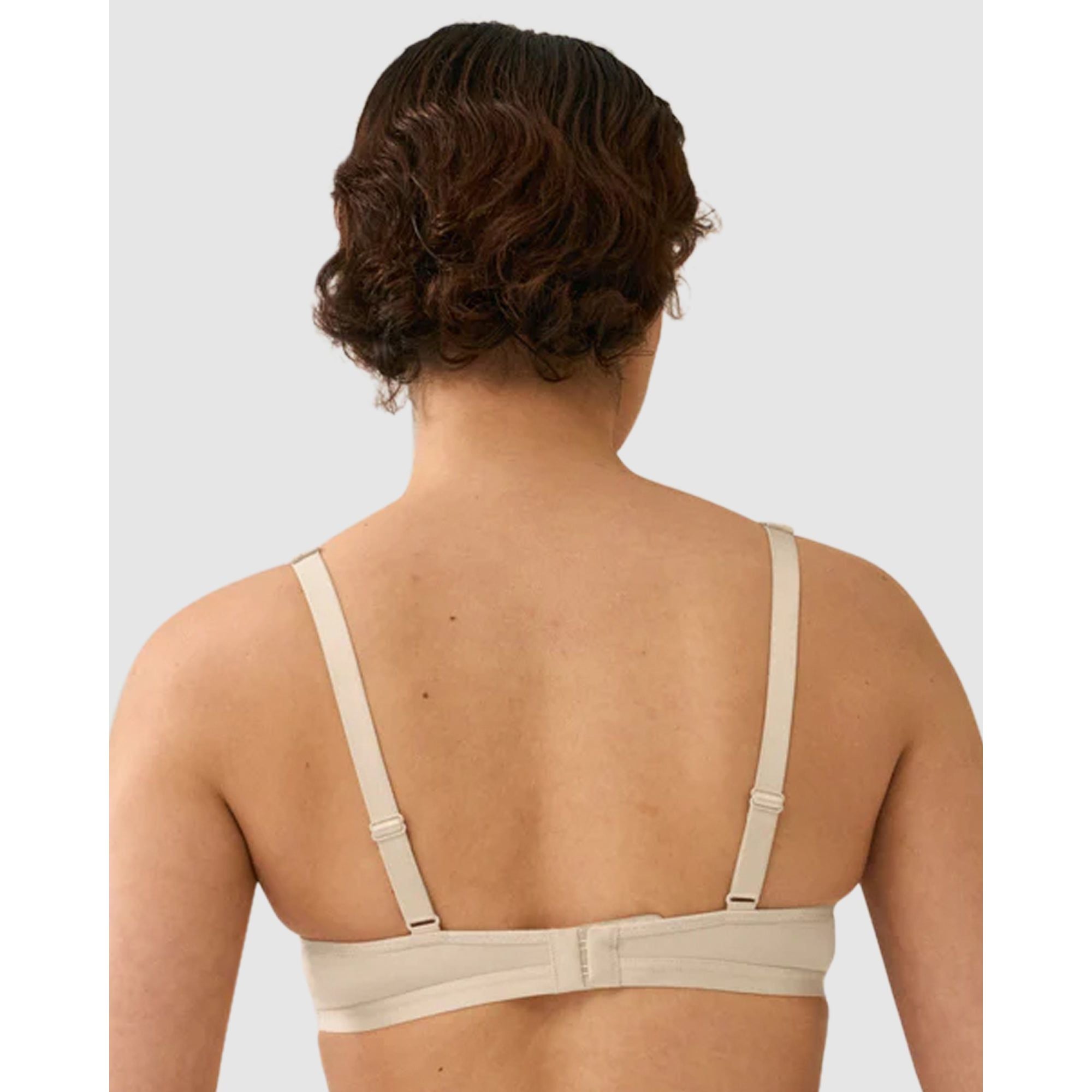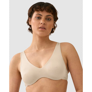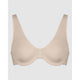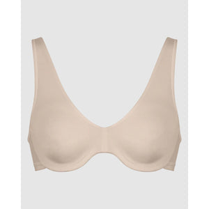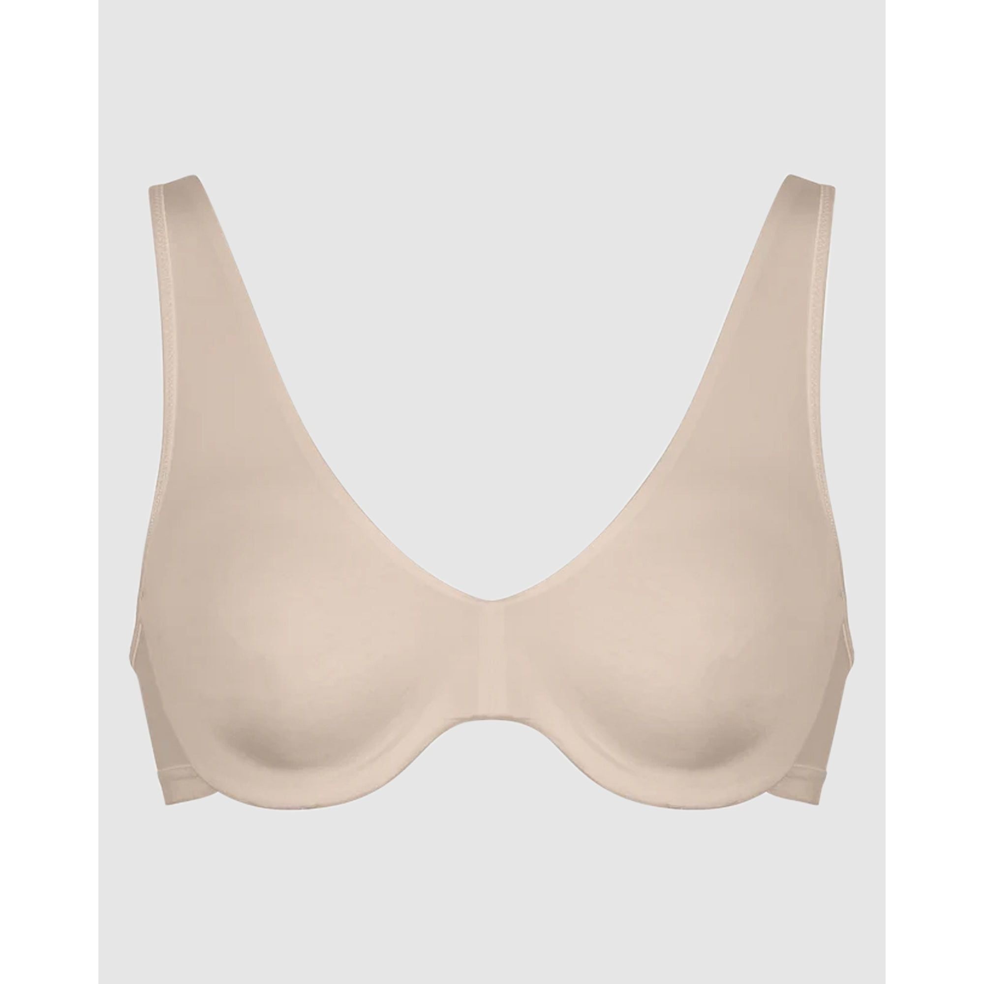 Underwired support and seamless construction merge with ultra-light, second skin-like comfort in this unpadded bra. The high apex cups without decoration create a sleek and minimalist look with moderate coverage, while wide straps and a reinforced centre panel also ensure secure support.