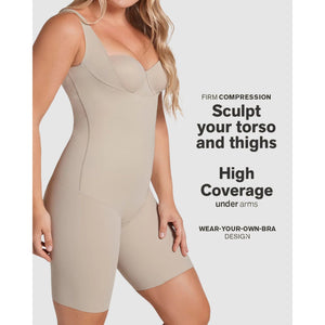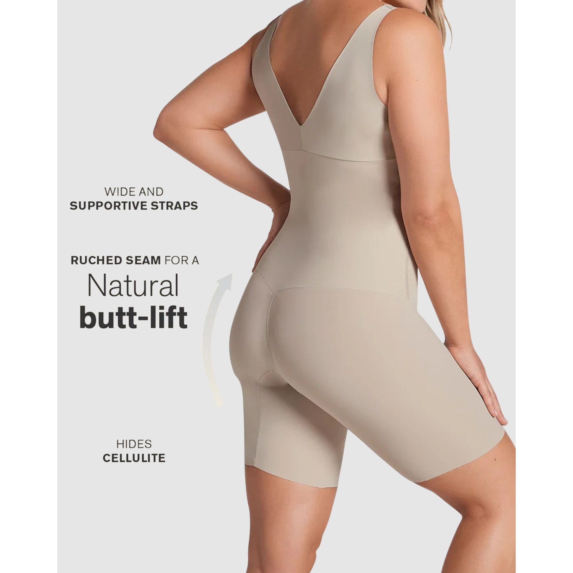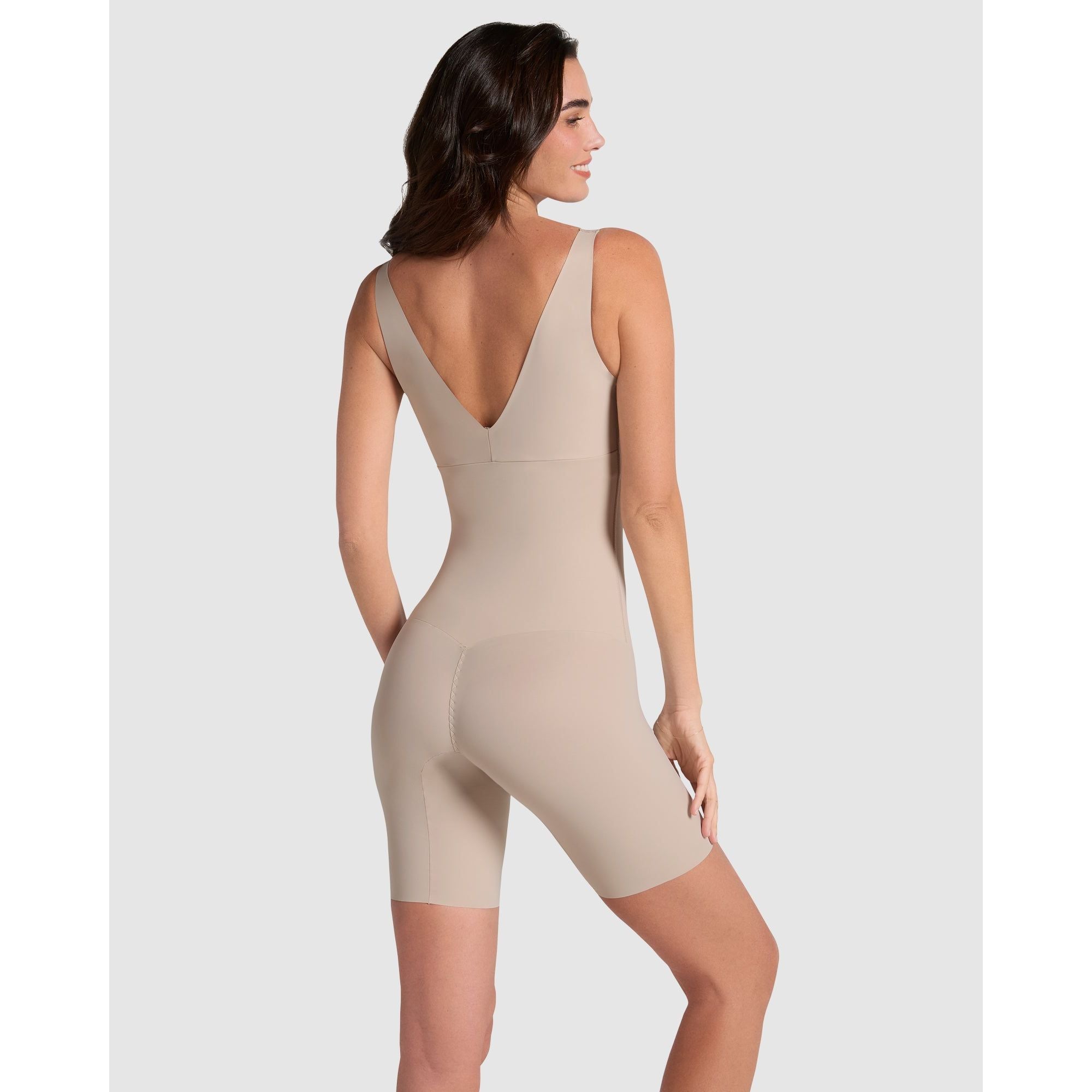 Whatever the occasion, rock a flawless silhouette in this ultra-smooth, step-in body shaper made from light-yet-strong DuraFit® fabric which is double layered in the torso for firm compression. The ultra-flat, laser-cut leg openings are invisible under clothing, the high sides smooth your underarms, and the ruched centre seam at the back creates a flattering butt-lift effect.