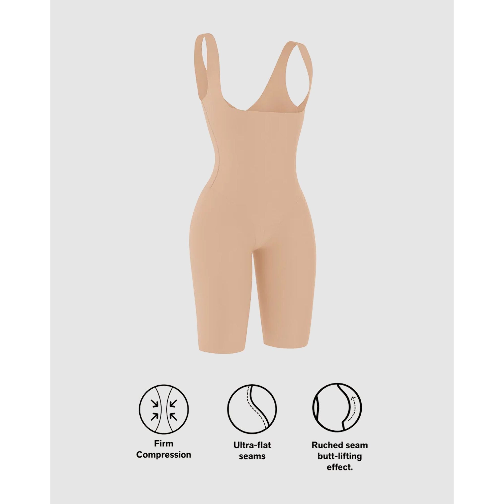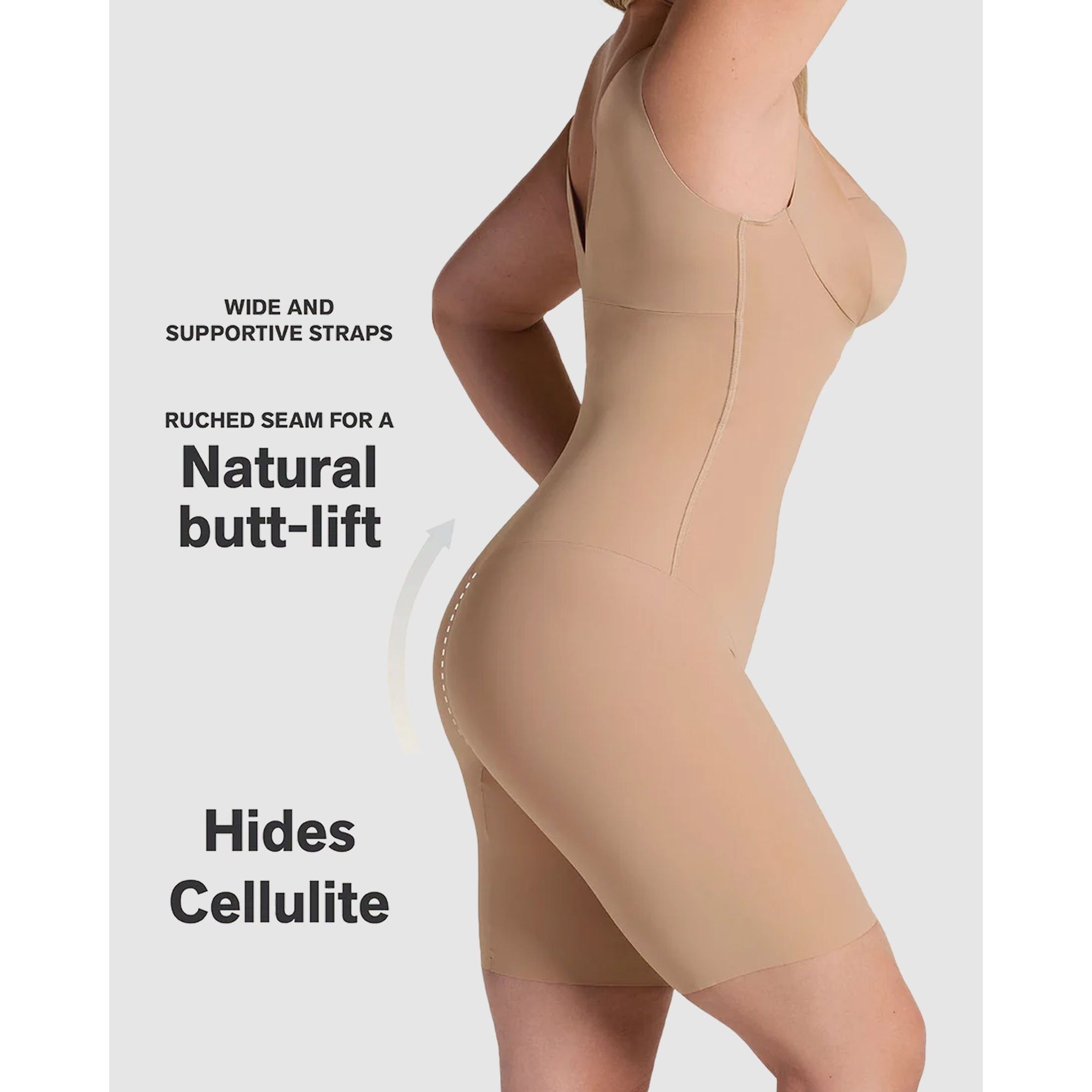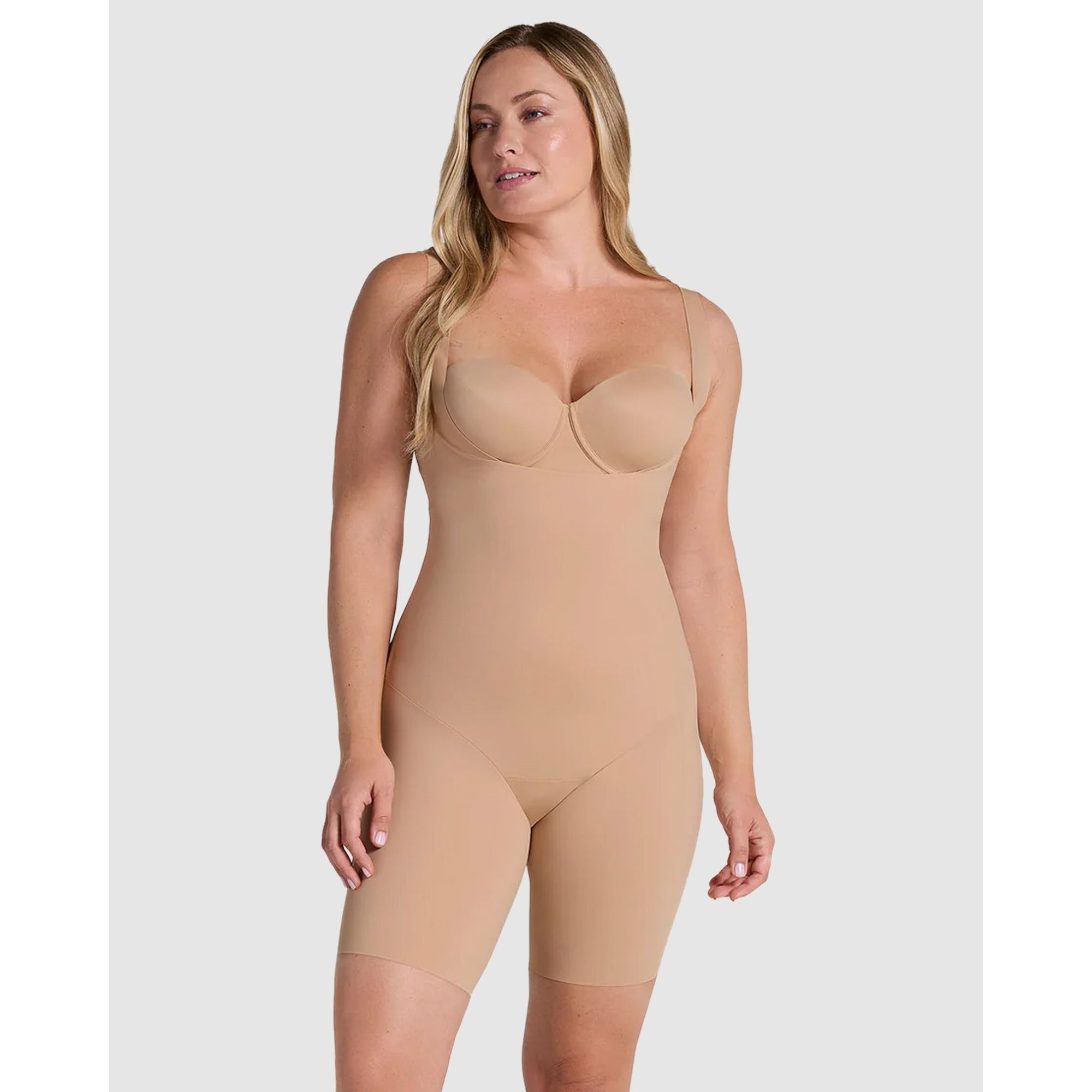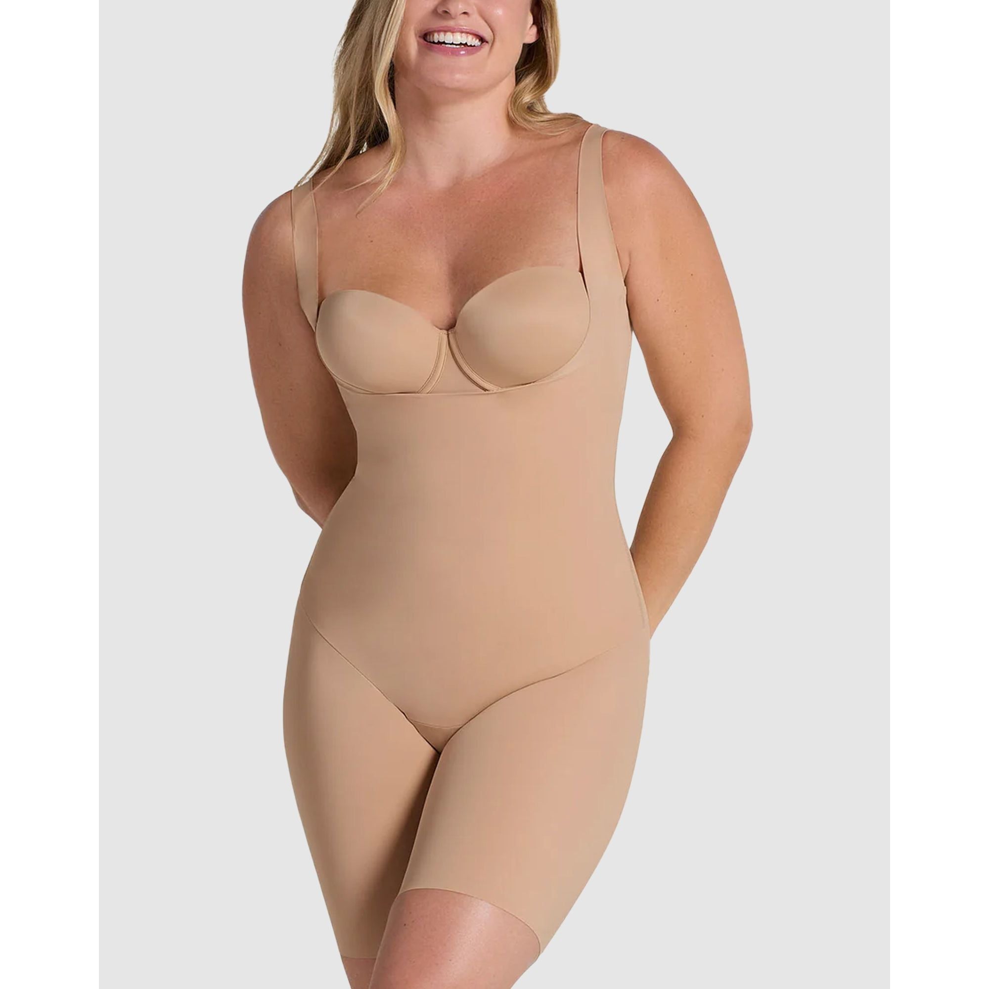 Whatever the occasion, rock a flawless silhouette in this ultra-smooth, step-in body shaper made from light-yet-strong DuraFit® fabric which is double layered in the torso for firm compression. The ultra-flat, laser-cut leg openings are invisible under clothing, the high sides smooth your underarms, and the ruched centre seam at the back creates a flattering butt-lift effect.