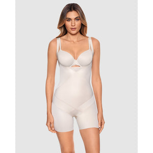 A 'wear your own bra' shapewear piece that offers all the benefits of a full body shaper, but without flattening your bust or making it impossible to wear plunge necklines! With a bike short style bottom, this underbust shapewear design is a thigh shaper and ultra high-waist tummy shaper in one, and the shoulder straps ensure it won't roll down.