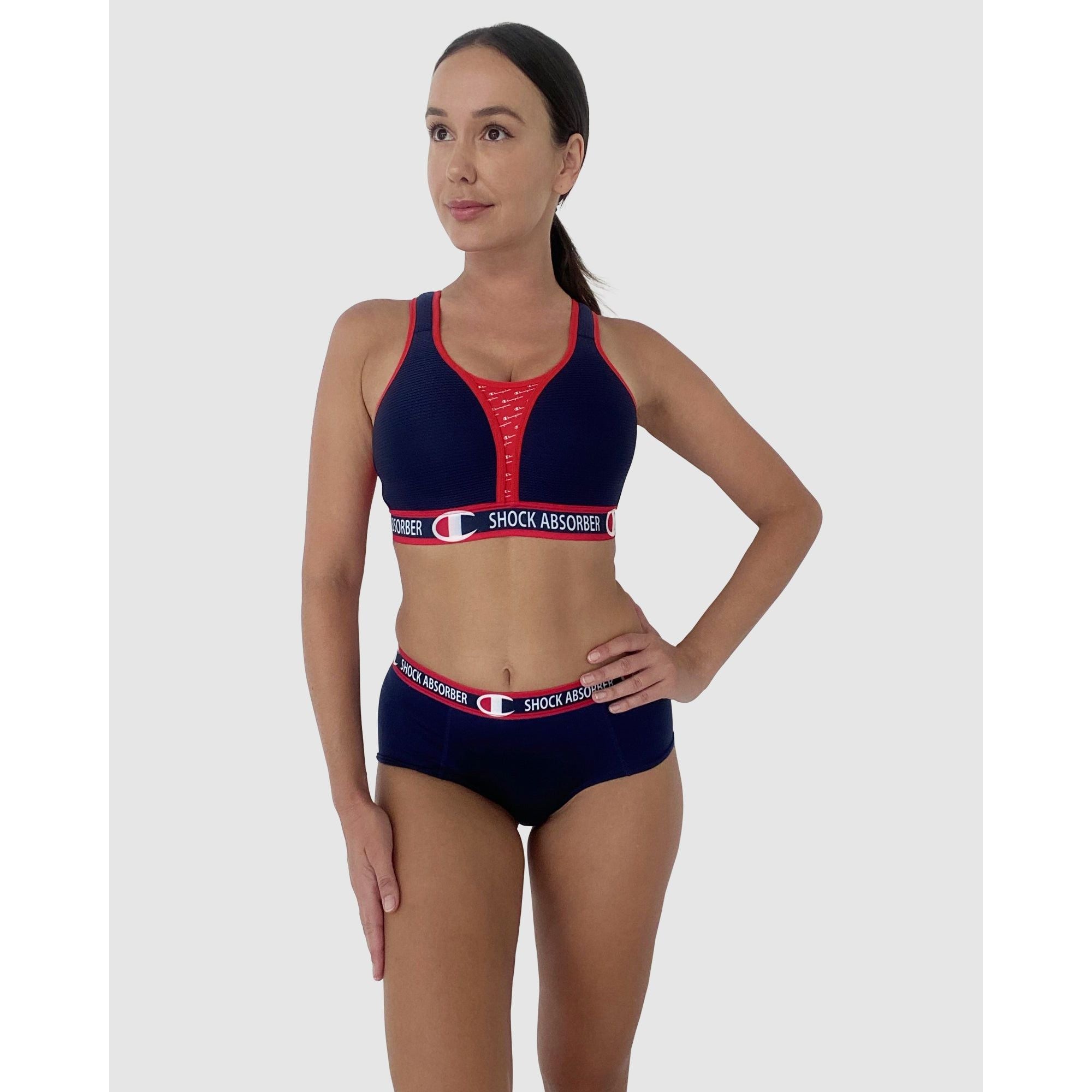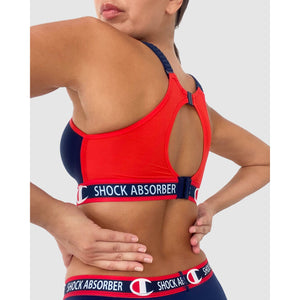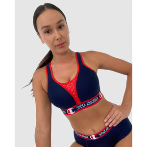 Shock Absorber's popular padded sports bra has been given a fresh new look with Champion's signature colours and styling. Proven to reduce bounce by up to 78%, this high impact sports bra incorporates the brand's Infinity 8 compression + encapsulation support system, for total wirefree comfort no matter how intense your workout gets. A Dry Action System, thermoregulation treatment, and cushioned straps complete this wireless sports bra design.