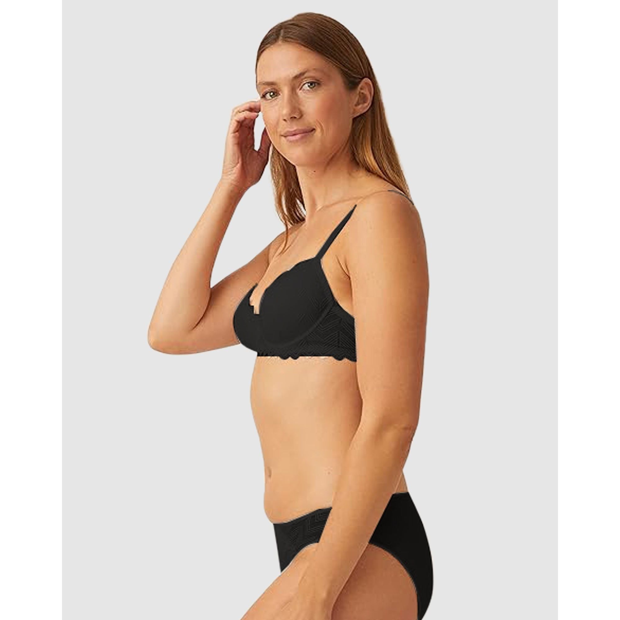 Style, support and comfort all collide in this padded bra, which is covered with graphic zig-zag patterned lace with matching zig-zag edging. Once it's in your lingerie drawer, this is the wired bra you'll be reaching for every morning thanks to its incredibly comfortable feel and fabulous shaping.