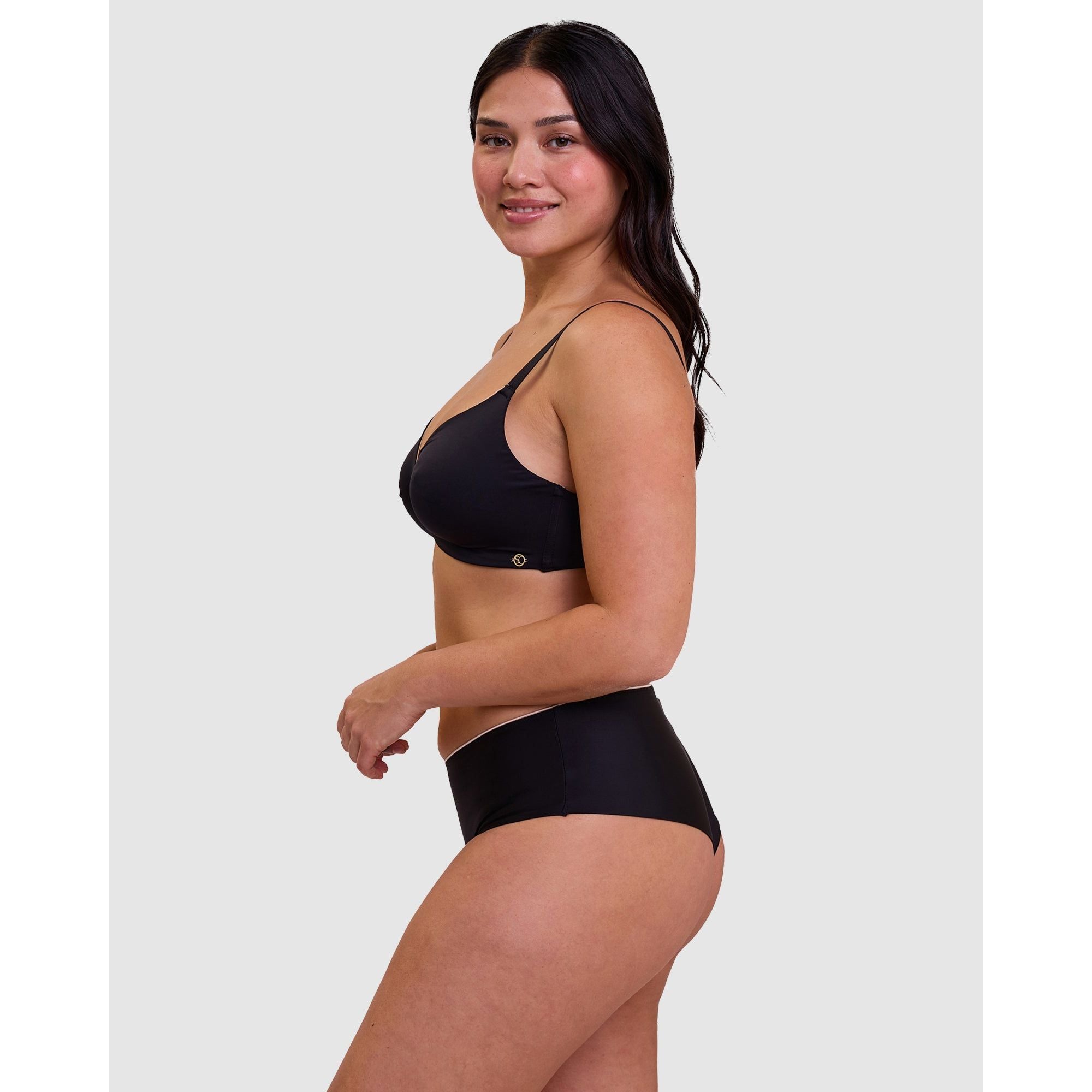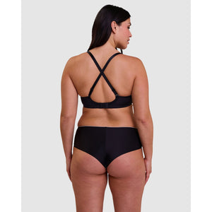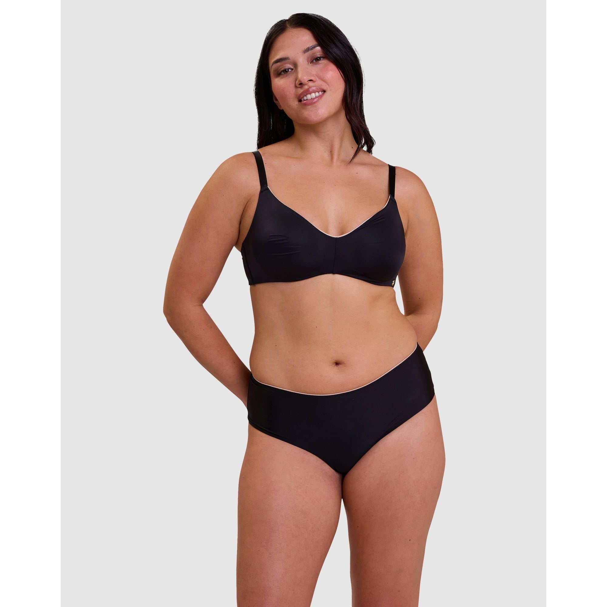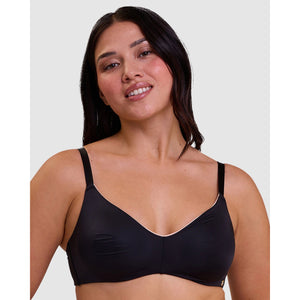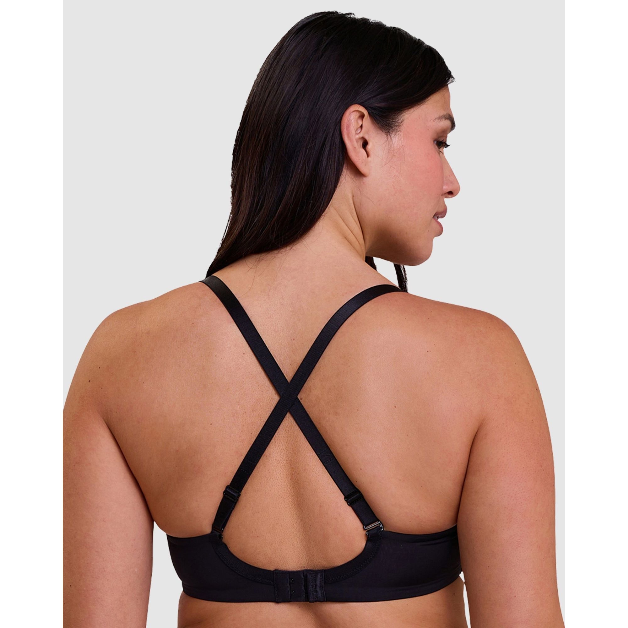 Designed for an ultra-discreet look under your clothing, plus maximum comfort, this wireless bra has smooth moulded cups, flat finishes, and multiway straps that can be crossed over at the back. The soft microfibre fabric has a glossy satin finish, and it's trimmed with a flash of contrasting colour at the neckline.