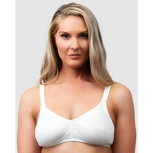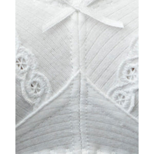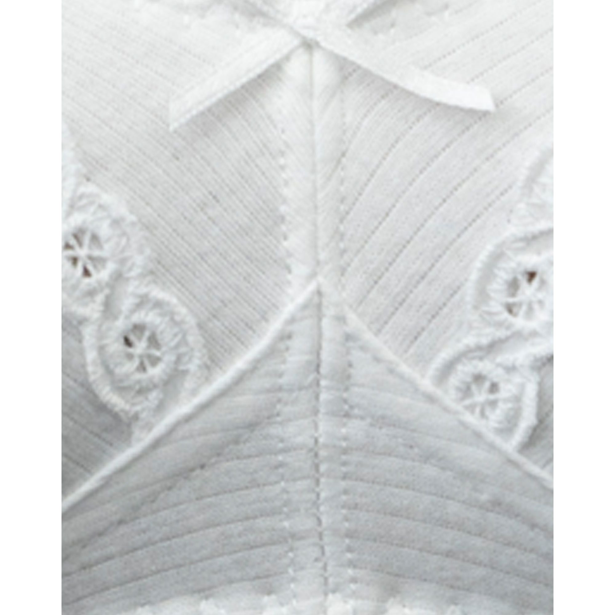 Enjoy dreamy comfort and gentle everyday support with this pure cotton bra, which is made from a ribbed fabric that's soft to the touch and has a little flex for the perfect fit. The seamed cups with side panels create a narrow but natural-looking silhouette, while scalloped cutwork trims add a stylish and feminine touch to this wireless bra.