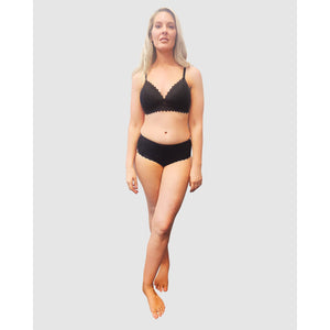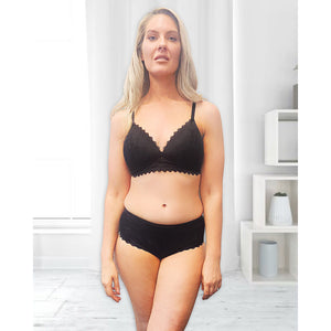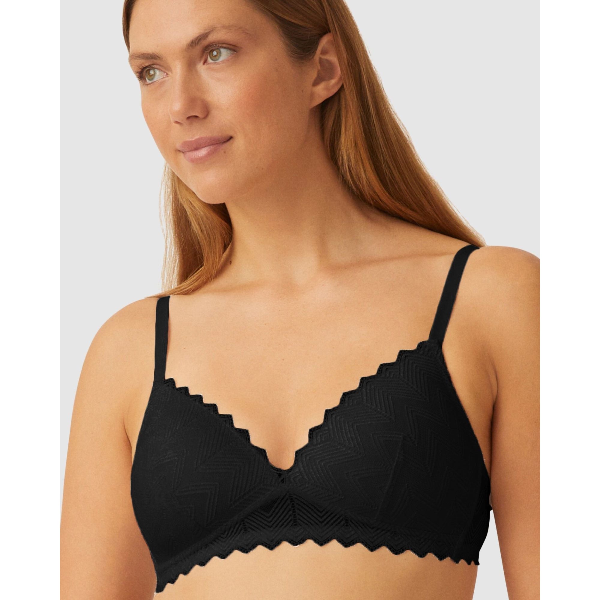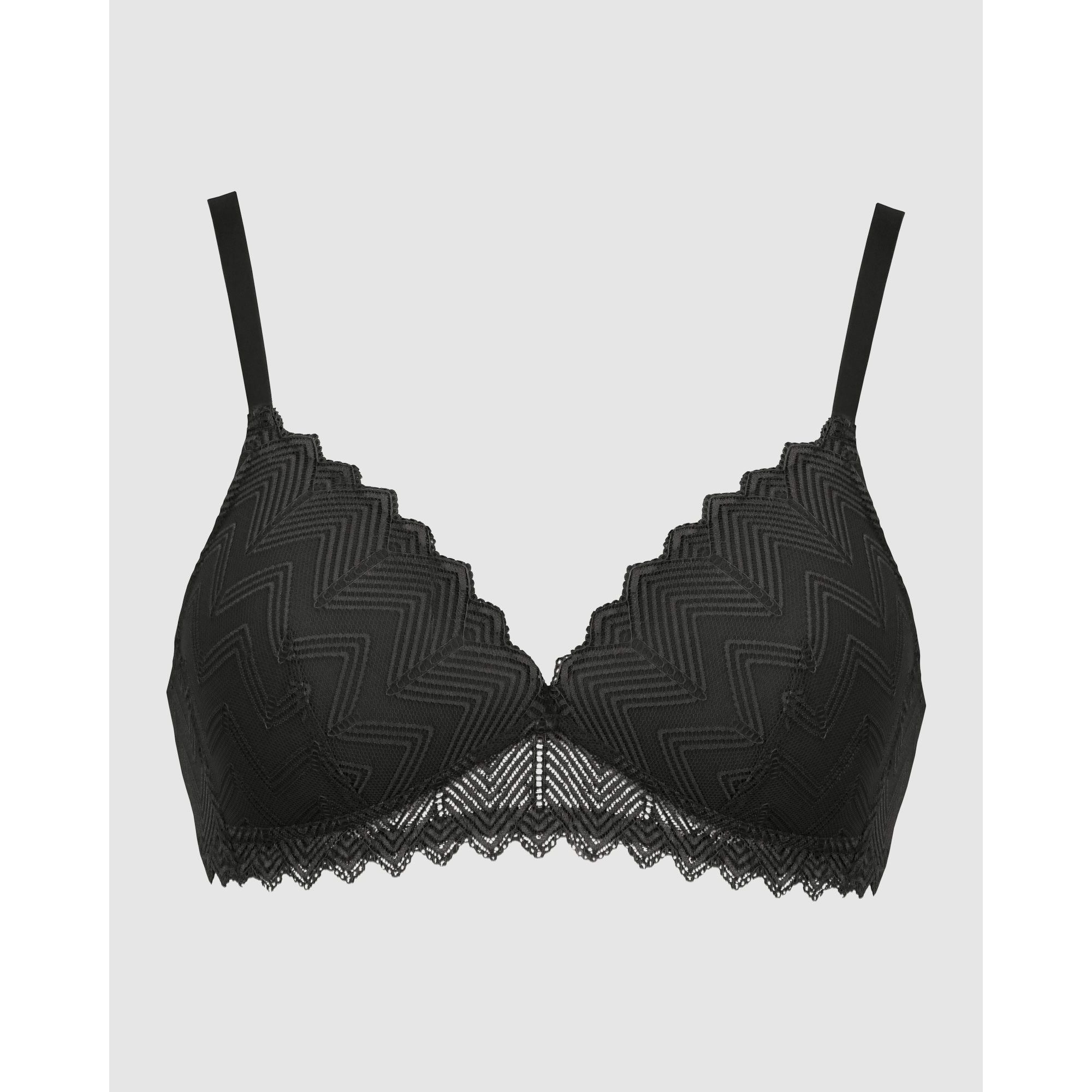 Everyday comfort meets modern styling in this padded bralette, which is made from a graphic zig-zag patterned lace. It's a soft, wirefree bra with lined, triangle-shaped cups that provide gentle support and shaping.
