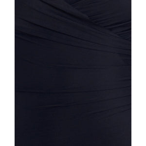 Fabric composition: Body - 69% Nylon, 31% Spandex. Drape - 79% Nylon, 21% Spandex.