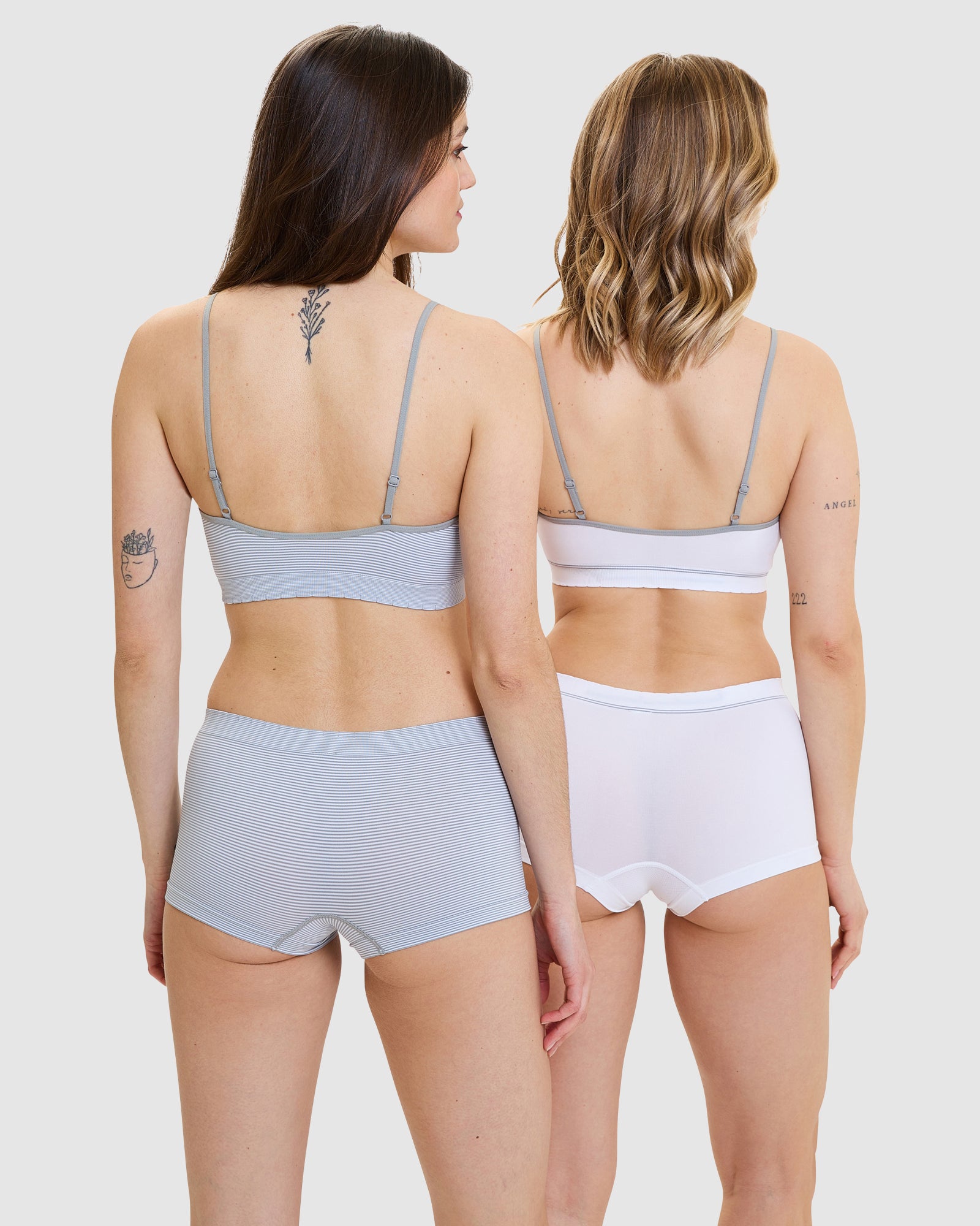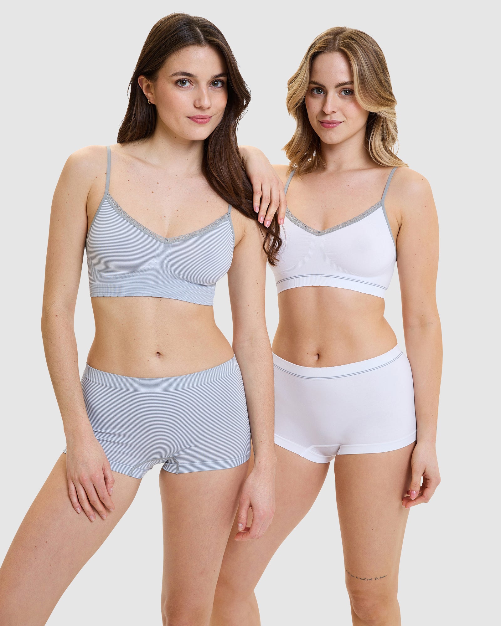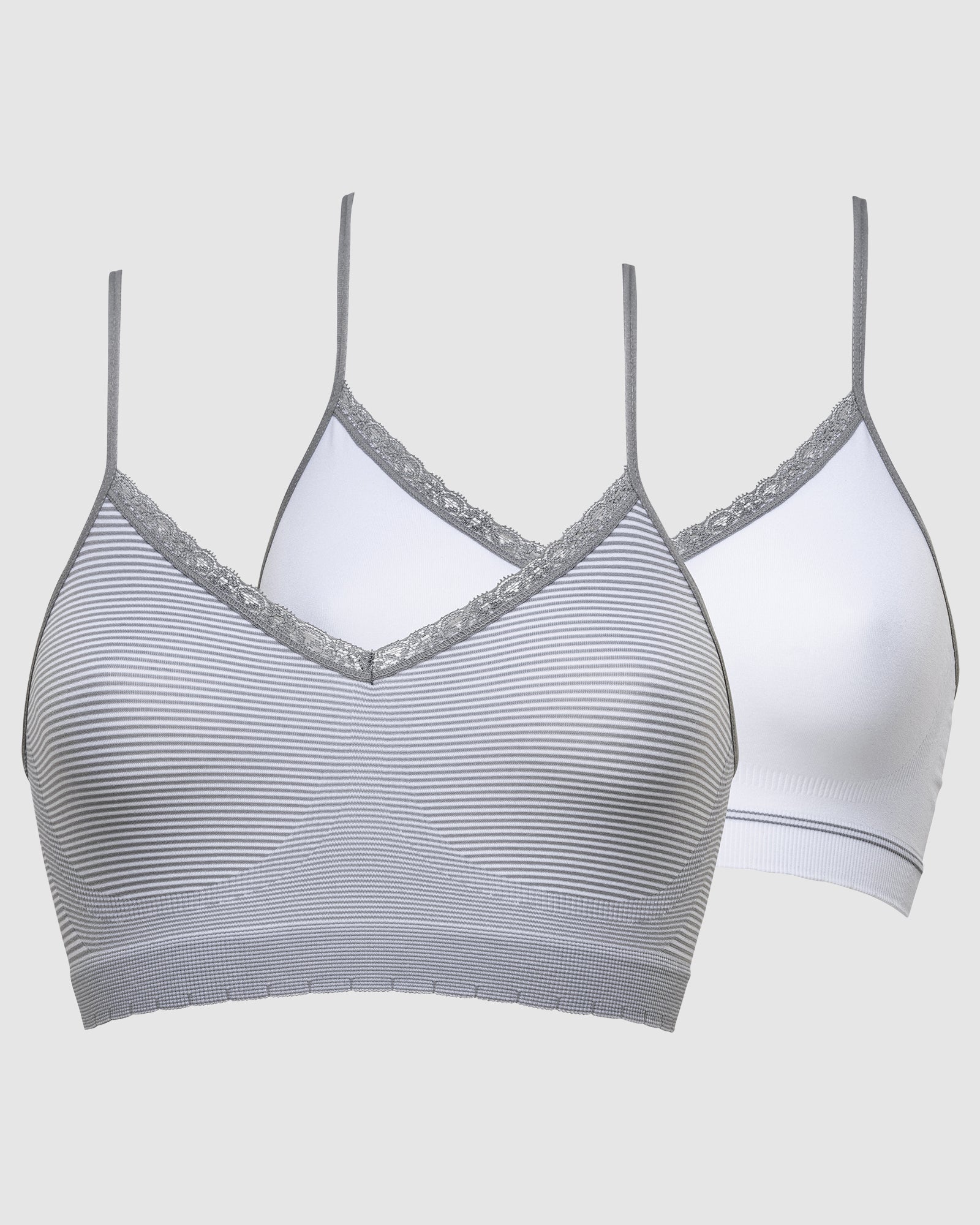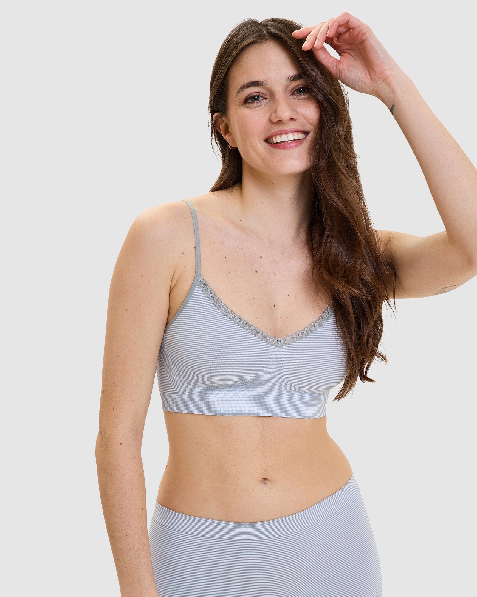 Get light-feeling, ultra-comfortable support in this casual crop top bra design, which has gentle shaping at the front and is made from ultra-soft and flexible circular knit fabric. The V-shaped neckline is trimmed with pretty lace, and the narrow shoulder straps are adjustable to perfect the fit.