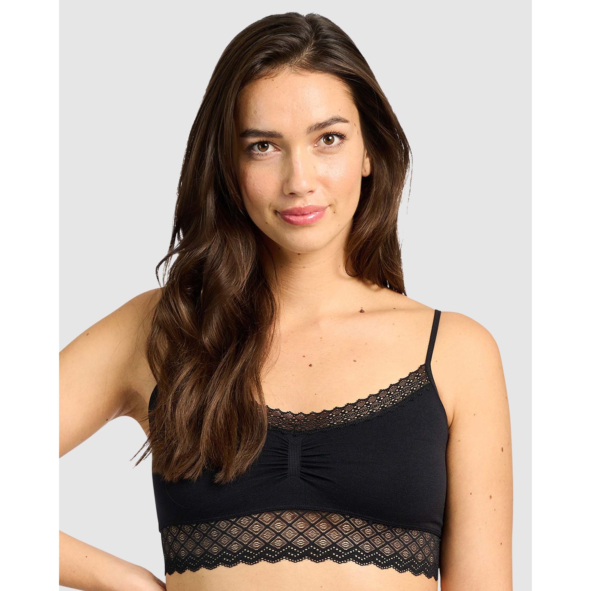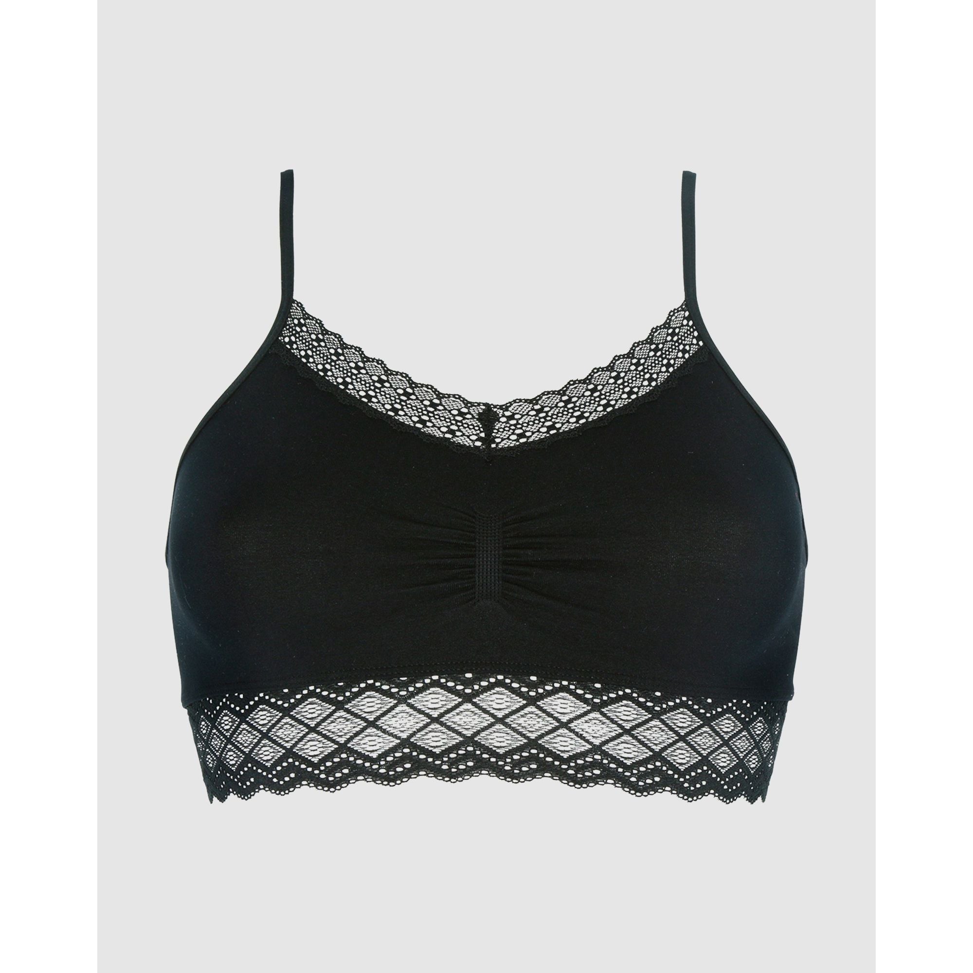 Exquisitely comfortable and pretty too - what's not to love about this unpadded, longline bralette with a wide lace band and matching lace trim at the neckline? Soft, seamless fabric delivers lightweight support, and it's ruched at the centre-front for extra shaping.