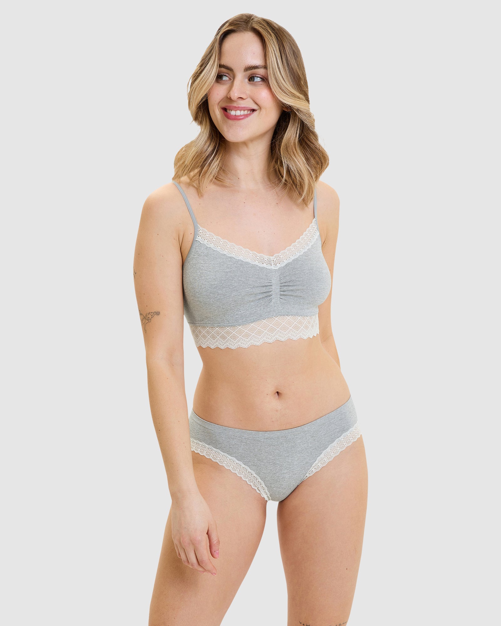 Exquisitely comfortable and pretty too - what's not to love about this unpadded, longline bralette with a wide lace band and matching lace trim at the neckline? Soft, seamless fabric delivers lightweight support, and it's ruched at the centre-front for extra shaping.