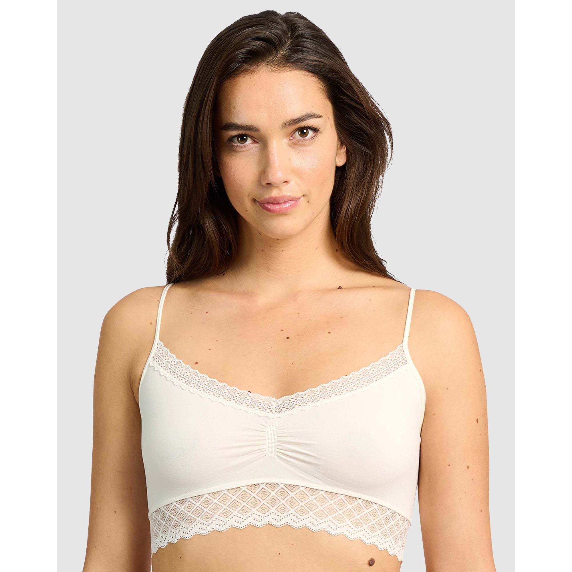 Exquisitely comfortable and pretty too - what's not to love about this unpadded, longline bralette with a wide lace band and matching lace trim at the neckline? Soft, seamless fabric delivers lightweight support, and it's ruched at the centre-front for extra shaping.